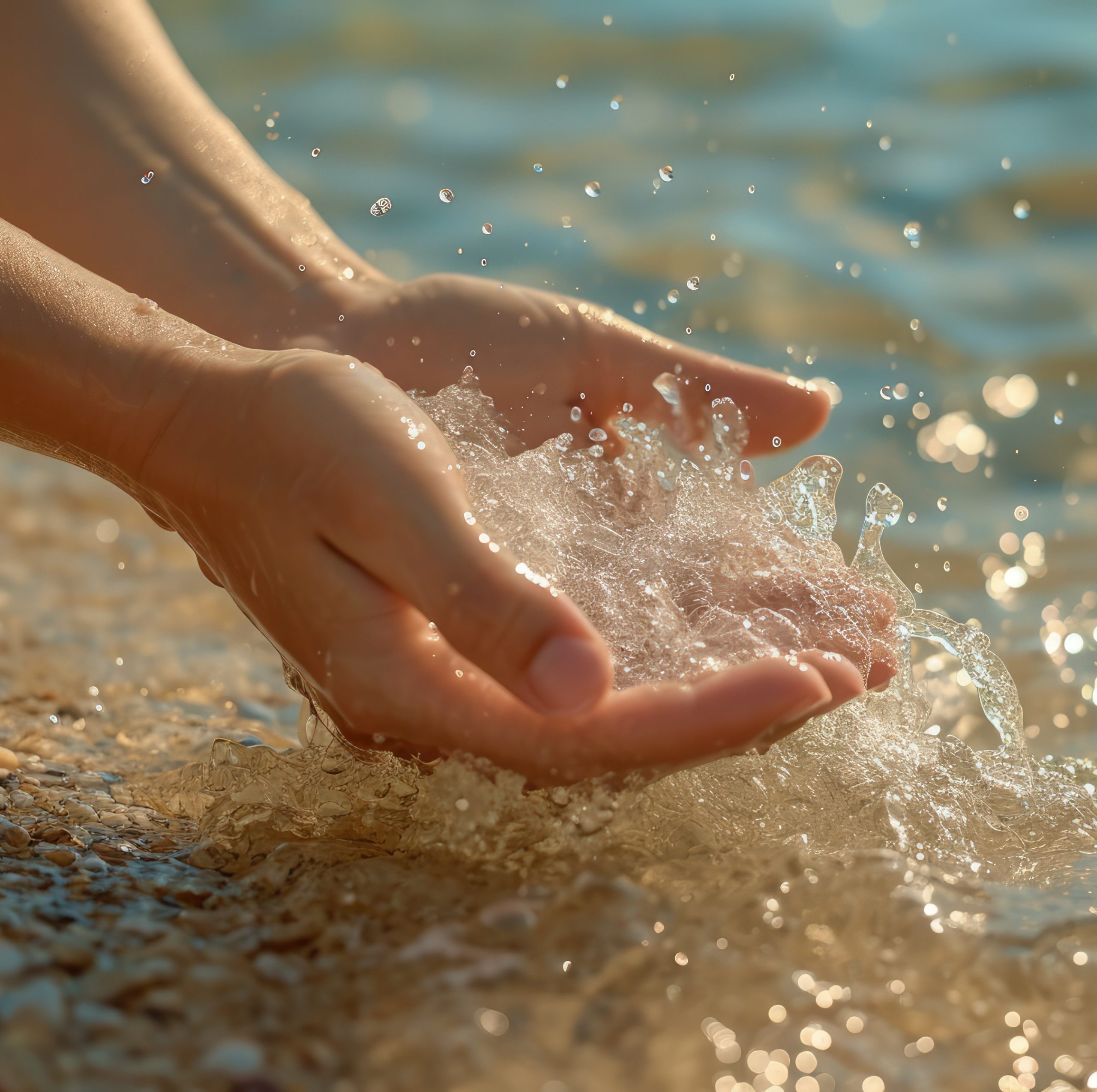 Χέρια μέσα σε καθαρό κρυστάλλινο θαλασσινό νερό