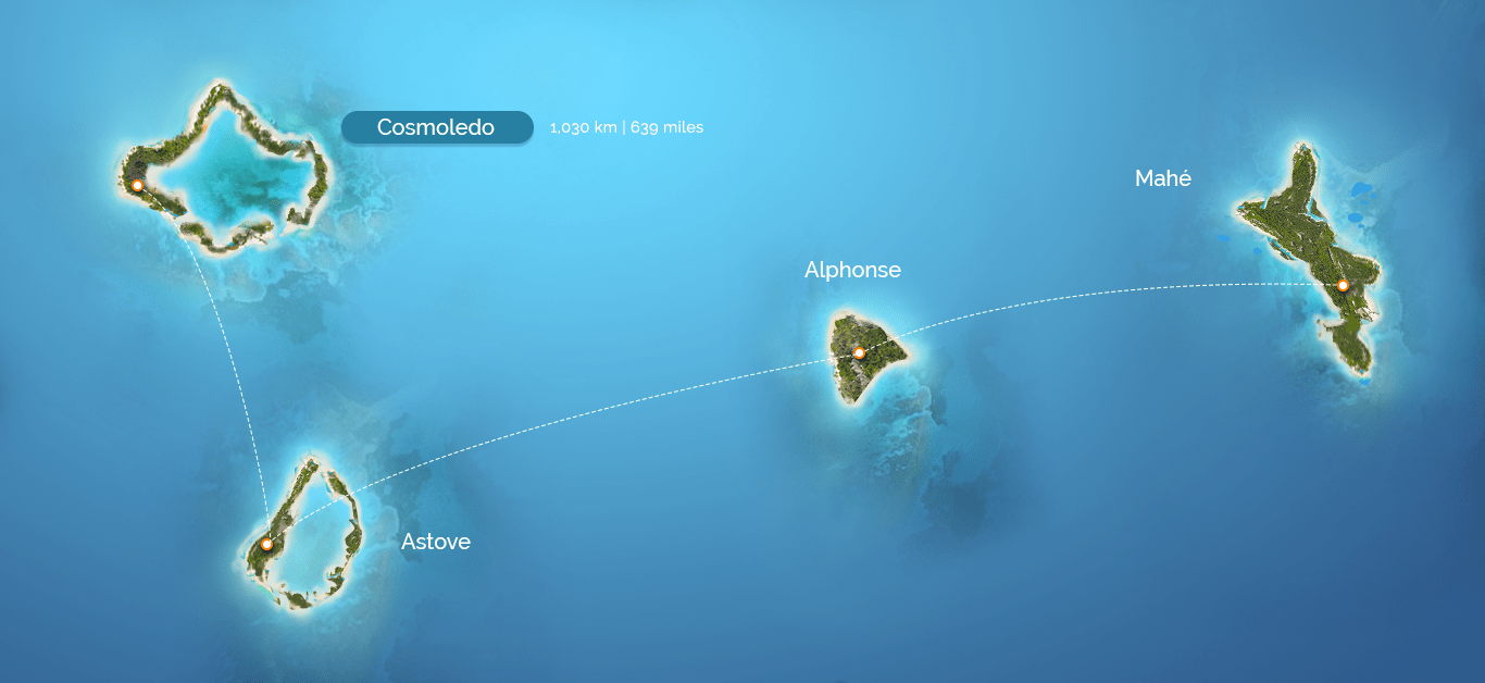 Το ταξίδι στα νησιά Wizard είναι μέρος της περιπέτειας: μετά την προσγείωση στο νησί Mahe, μια άλλη πτήση θα σας μεταφέρει στο Astove και από εκεί θα φτάσετε με πλοιάριο στο Cosmoledo. Ένα καταπληκτικό ταξίδι σε ένα παρθένο και μαγευτικό τοπίο.