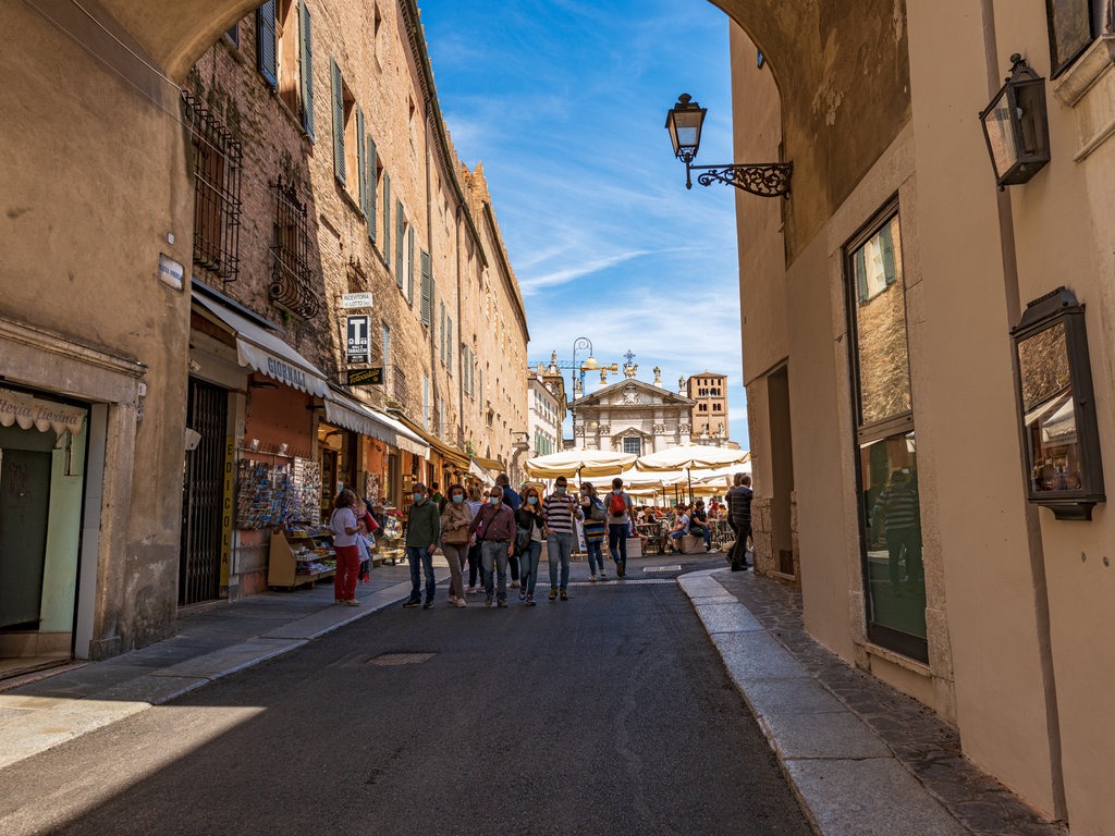 Στενό δίπλα στην πλατεία Sordello. Στο βάθος ο Καθεδρικός Ναός του Αγίου Πέτρου.