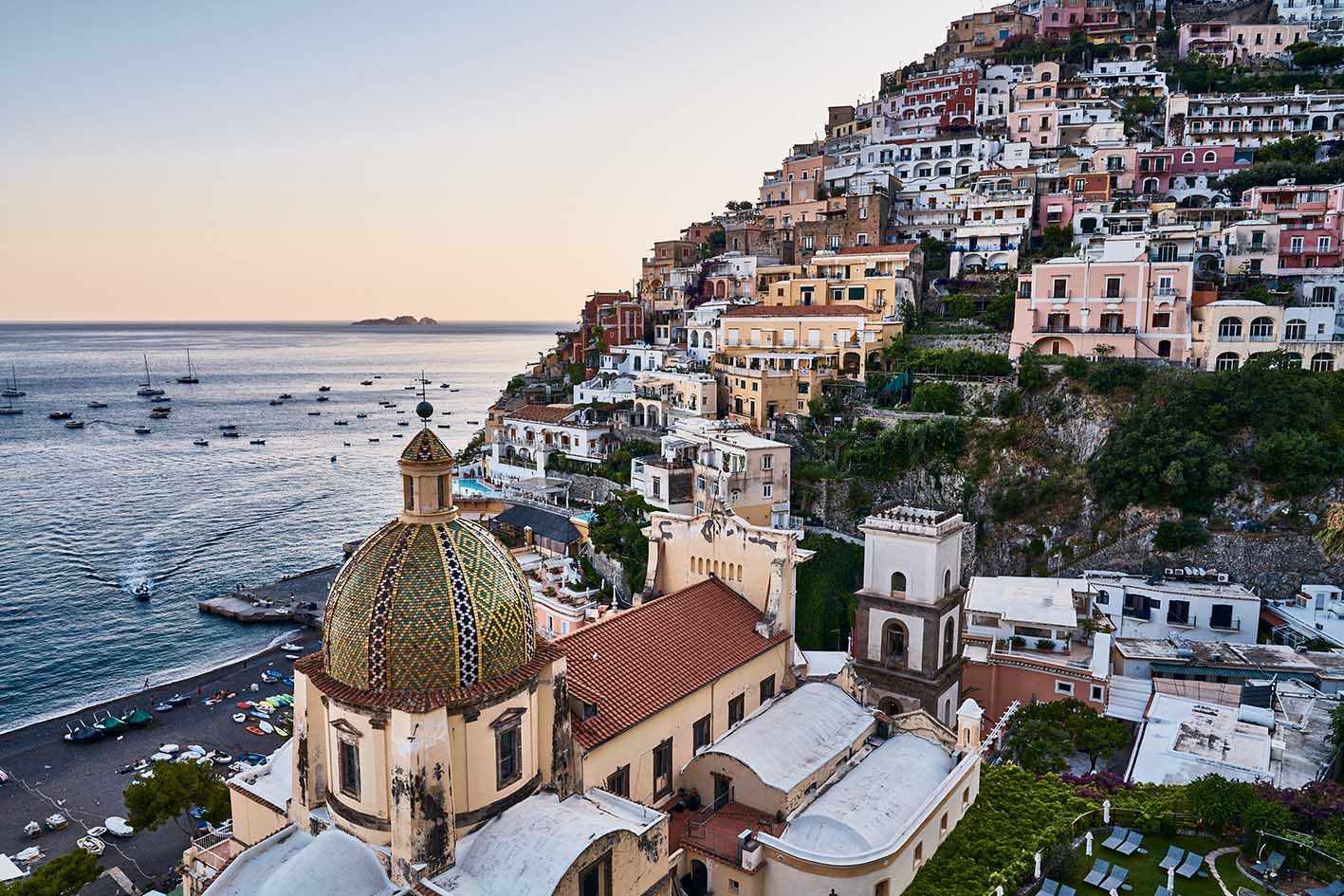 Ένα από τα πλέον ιδιαίτερα χωριουδάκια της ακτής Amalfi, με τα χρωματιστά σπίτια του να κρέμονται από τις απότομες πλαγιές των ορέων Lattari. Ανάμεσά τους, ξεπροβάλλει το Le Sirenuse (οι Σειρήνες), το θρυλικό ξενοδοχείο της οικογένειας Σερσάλε, που πριν από ακριβώς 72 χρόνια έφερε τη φινέτσα και την αρχοντιά στο μικρό αυτό χωριό, μεταμορφώνοντας όλο το Positano, από μικρό ψαροχώρι, σε ένα από τα πιο κοσμοπολίτικα μέρη ολόκληρης της Ιταλίας.
