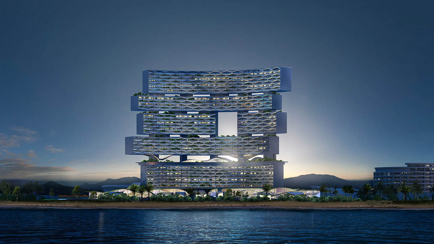 Το Sanya Horizons θα υψωθεί 160 μέτρα πάνω από την προκυμαία και έχει σχεδιαστεί ώστε να αγκαλιάζει, να ενσωματώνει και να ενισχύει τη γύρω εντυπωσιακή φύση δημιουργώντας έναν μοναδικής ομορφιάς και λειτουργικότητας, οικολογικό προορισμό αναψυχής.