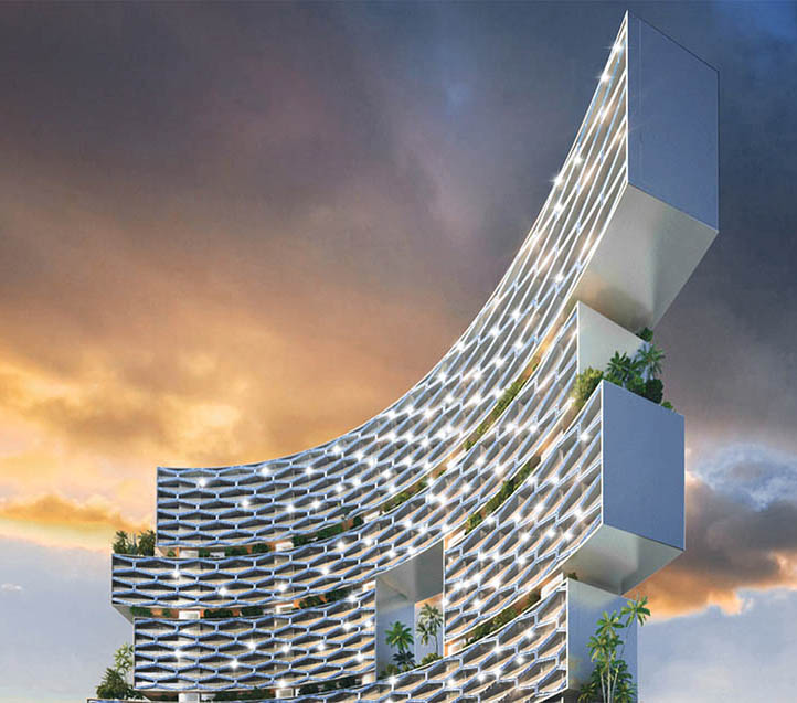 Η πρόσοψη θα αποτελείται από ένα βαθύ εξαγωνικό πλέγμα μπαλκονιών και διαδρόμων, το οποίο παρέχει πλήρη προστασία από τον ήλιο, με αποτέλεσμα να μειωθεί δραματικά και το συνολικό ενεργειακό αποτύπωμα του κτιρίου.