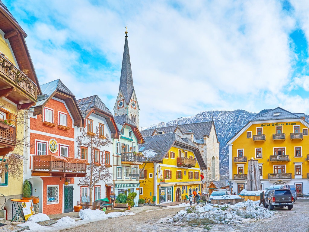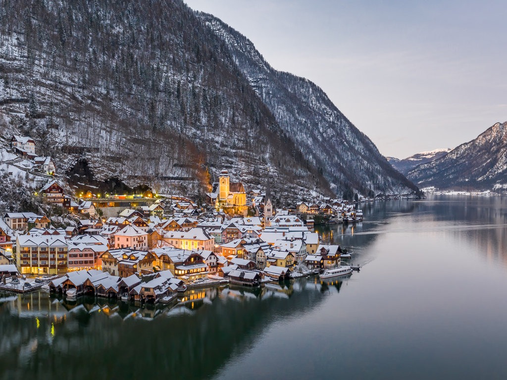 Το όμορφο Hallstatt, σκαρφαλωμένο στις αυστριακές Άλπεις, είναι κουκλίστικο οποιαδήποτε εποχή του χρόνου. Όταν έρχεται όμως ο χειμώνας, αυτό το παραλίμνιο χωριό πραγματικά μεταμορφώνεται σε σκηνικό βγαλμένο από παραμύθι. Οι σειρές των κτιρίων του 16ου αιώνα, όλα βαμμένα με κίτρινο, ροζ και κόκκινο χρώμα, δημιουργούν εντυπωσιακή αντίθεση με το χιόνι που καλύπτει τα πάντα, αλλά και με τις χρυσές αποχρώσεις του φωτός που καθρεφτίζεται στο παγωμένο νερό της λίμνης.