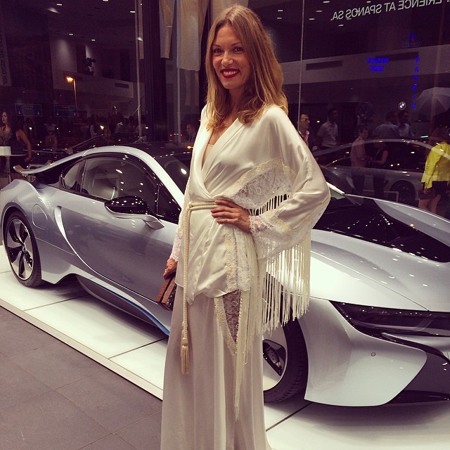 Η Βίκυ Καγιά έδωσε χτες το βράδυ το παρών στο fashion show των Mi-Ro, όπου παρουσίασαν την pre-fall συλλογή τους για το 2014, με ένα αέρινο σατέν φόρεμα των δύο ταλαντούχων σχεδιαστών –με λεπτομέρειες απο δαντέλα και κρόσσια στα μανίκια- καταφέρνοντας να μας εντυπωσιάσει για ακόμα μια φορά. Ολοκλήρωσε το look με μια ζώνη από σχοινί, δεμένη χαλαρά στη μέση, και κόκκινο κραγιόν.