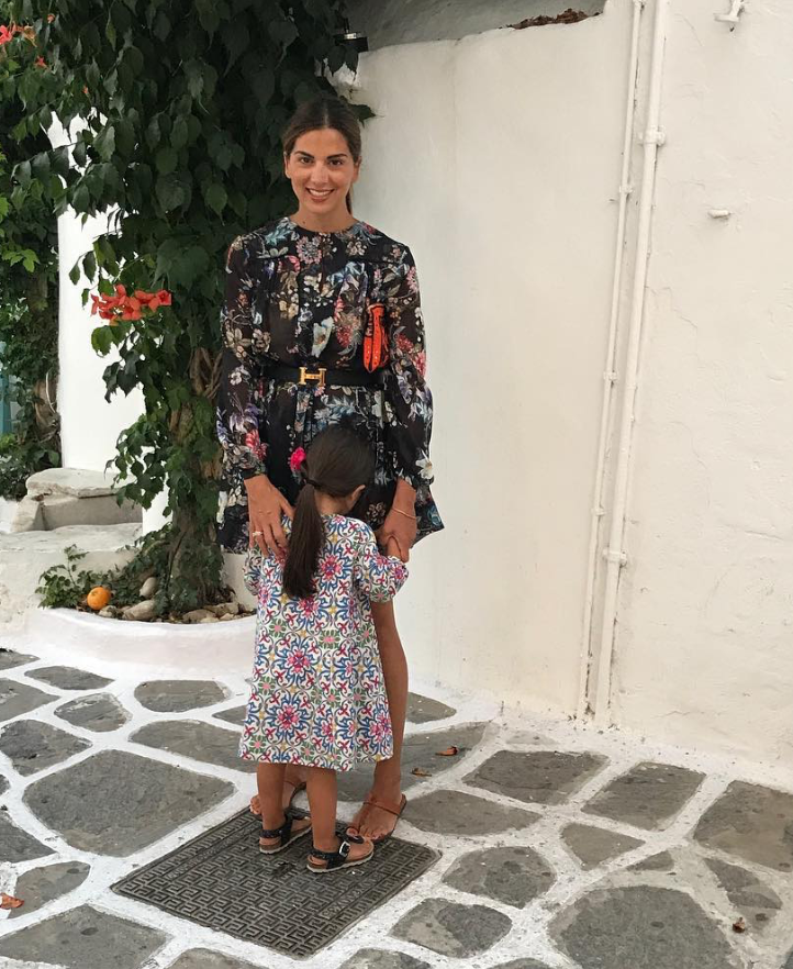 Εμείς θα σταθούμε σε μια εμφάνιση που θα θεωρούσαμε άψογη αν δεν είχε κάνει ένα στιλιστικό λάθος. Η παρουσιάστρια λοιπόν βρίσκεται στην Πάρο και απολαμβάνει τις διακοπές της με τις κόρες της. Πριν από μέρες μοιράστηκε στο Instagram αυτή τη φωτογραφία, στην οποία ποζάρει με μία από τις κόρες της φορώντας ένα φλοράλ, κοντό φόρεμα. Για να τονίσει τη μέση της και να κάνει τη σιλουέτα της πιο θηλυκή επέλεξε να το συνδυάσει με μία μαύρη ζώνη. Όλα καλά μέχρι εδώ. Η ζώνη όμως ήταν η γνωστή και πλέον κλασική μαύρη, δερμάτινη Hermès με το μεταλλικό H στη μέση. Όσο passepartout και αν είναι αυτό το αξεσουάρ, στο συγκεκριμένο look δεν ταίριαζε. Το φόρεμα αυτό απαιτούσε μία ζώνη πολύ απλή, διακριτική και χωρίς κανένα ίχνος από λογότυπα και labels.