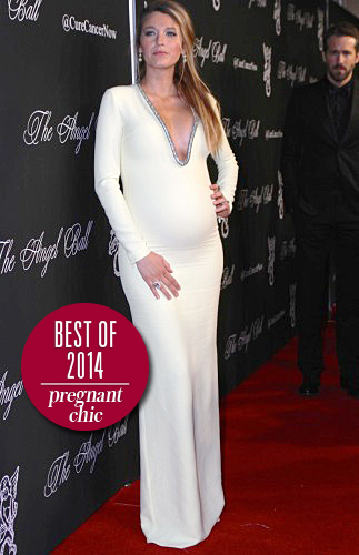 Η Blake Lively απέδειξε με αυτή της την εμφάνιση ότι με την εγκυμοσύνη η γυναίκα μπορεί να δείχνει ακόμα πιο σέξι και από πριν. Και γι αυτό ήταν το πιο αγαπημένο μας pregnant chic look για τη χρονιά του 2014. Η όμορφη ηθοποιός, που περιμένει το πρώτο της παιδί με τον σύζυγό της Ryan Reynolds, έδωσε το παρών στη φιλανθρωπική εκδήλωση Angel Ball με παστέλ μακρύ φόρεμα Gucci(Resort 2015) -με αποκαλυπτικό ντεκολτέ διακοσμημένο με λαμπερές λεπτομέρειες. Ολοκλήρωσε το look με απαλό μακιγιάζ και τα μαλλιά της πιασμένα μισά μισά.