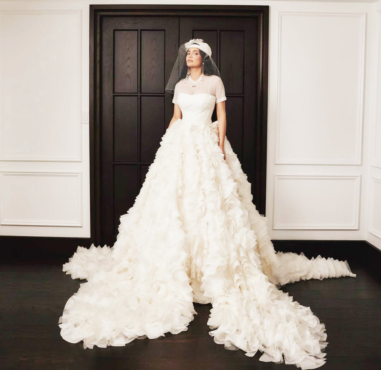 Η sporty νύφη: που έβαλε το βέλο της, αλλά δεν μπόρεσε να αποχωριστεί το αγαπημένο της καπέλο. Που επέλεξε το υπερβολικό τούλι, αλλά ήθελε και μία δόση sporty chic στο επάνω μέρος με κοντομάνικο μπλουζάκι. Μαντεύουμε επίσης, ότι από κάτω η αυθεντική νύφη του Virgil Abloh θα φορούσε κλασικά αθλητικά. Όχι όμως, η Kylie Jenner.