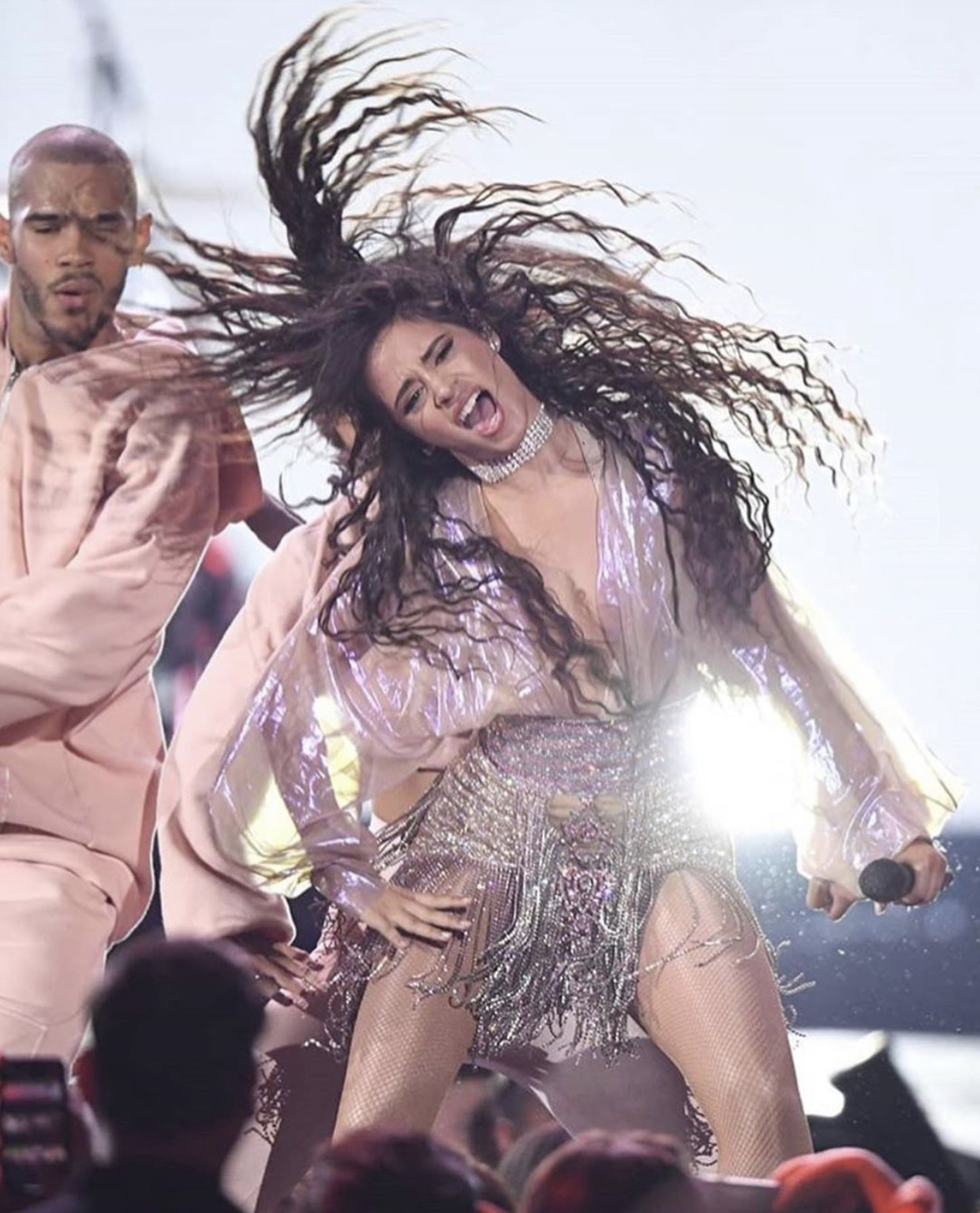 Η λατίνα τραγουδίστρια εμφανίστηκε στη σκηνή του φεστιβάλ με μία total δημιουργία Celia Kritharioti από την συλλογή της σχεδιάστριας για την άνοιξη και το καλοκαίρι του 2019, η οποία είχε παρουσιαστεί στο Παρίσι τον Ιανουάριο.