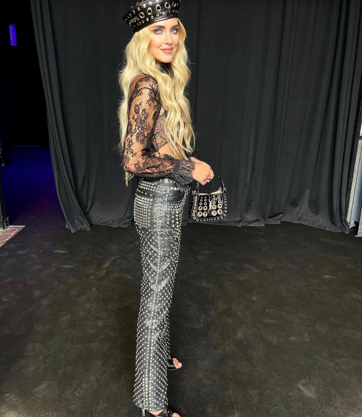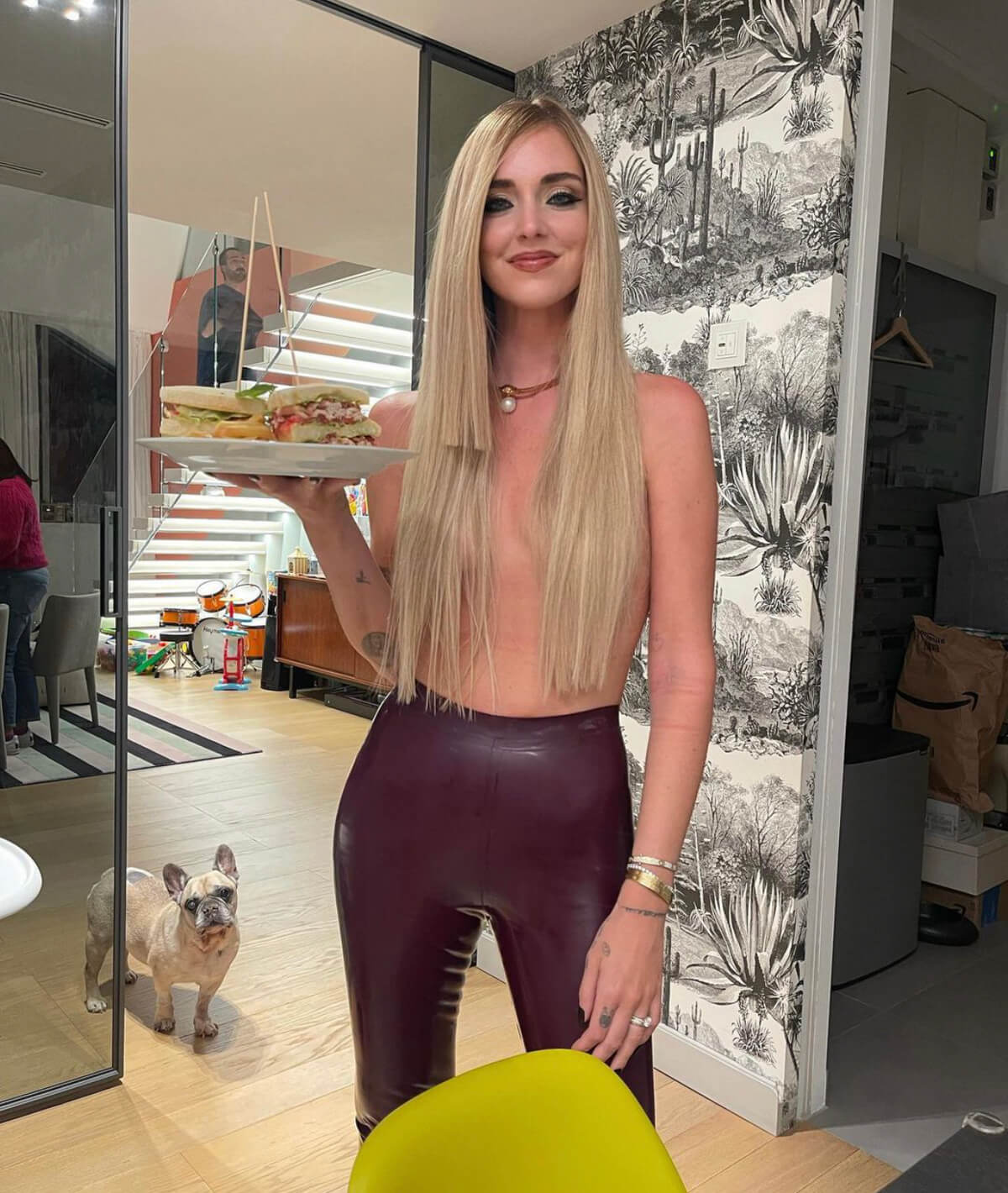 Home outfit: αν δεν έχετε πιτζάμες, μπορείτε κάλλιστα κι εσείς να αντιγράψετε το cozy look της Chiara, το οποίο αποτελείται απλά από ένα δερμάτινο κολάν και αρκετά μαλλιά μπροστά από το στήθος. Αν μη τι άλλο, θα είναι άνετο!