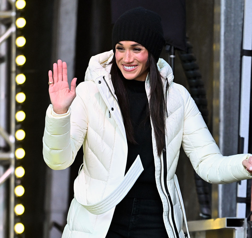 Κάτω από το παλτό, η Meghan κράτησε το outfit απλό αλλά σικάτο, επιλέγοντας ένα μαύρο πλεκτό φόρεμα που αγκάλιαζε τη σιλουέτα της, αφήνοντας το πανωφόρι να γίνει το statement κομμάτι. Όσο για τα αξεσουάρ της, κινήθηκε στη φιλοσοφία του “less is more”: διακριτικά κοσμήματα, ένα κλασικό μαύρο clutch και ένα ζευγάρι μαύρες γόβες Aquazzura, ένα brand που αγαπά ιδιαίτερα.