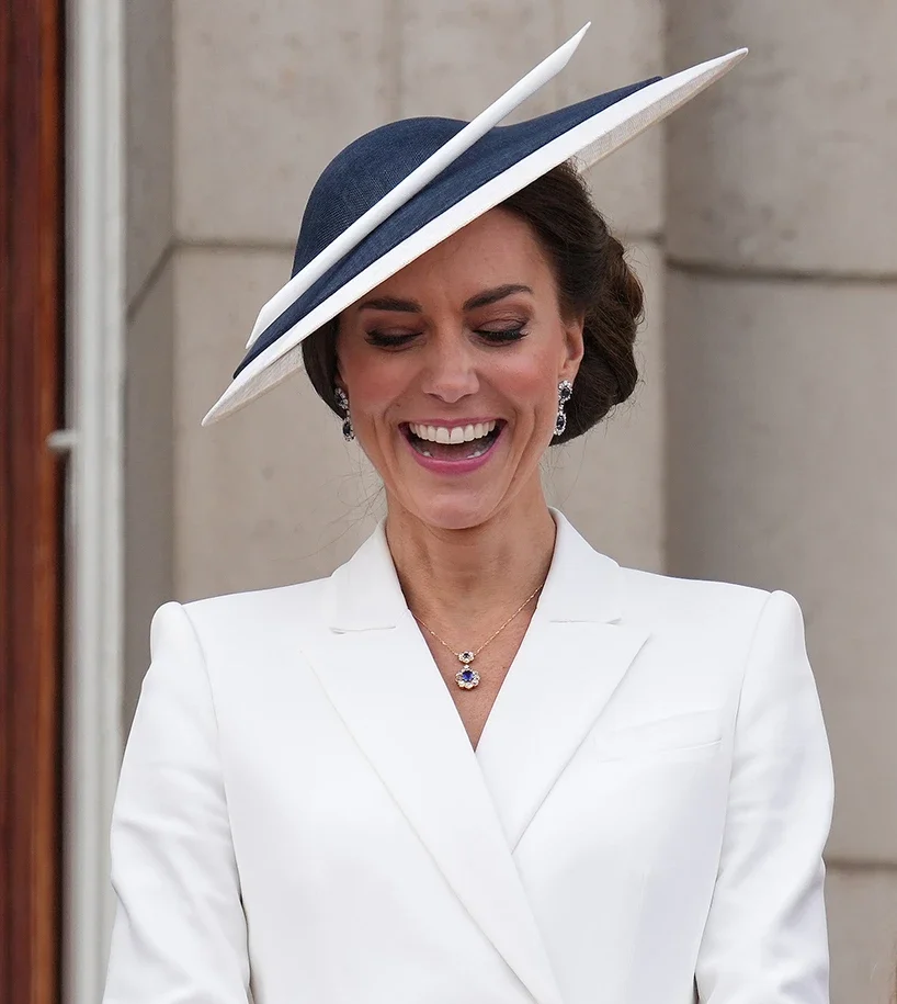 Η Δούκισσα εντυπωσίασε με ένα από τα κλασικά παλτό/φορέματά της από τον Alexander McQueen σε λευκό, που είχε φορέσει και στη σύνοδο κορυφής των G7 στην Κορνουάλη πέρυσι. Πρόσθεσε ένα καπέλο Philip Treacy σε γαλάζιο και λευκό και ένα ζευγάρι σκουλαρίκια από ζαφείρι που ταιριάζουν με την πέτρα στο διάσημο δαχτυλίδι αρραβώνων της, το οποίο προηγουμένως ανήκε στην αείμνηστη Νταϊάνα. Η απόφαση να φορέσει ένα κομμάτι που ήδη έχει στην κατοχή της για μια τέτοια περίσταση υψηλού προφίλ είναι σύμφωνη με την ολοένα και πιο συνειδητή προσέγγιση της Kate στη μόδα.