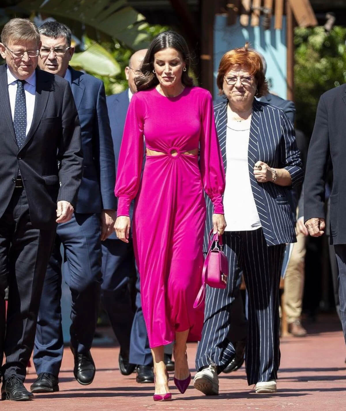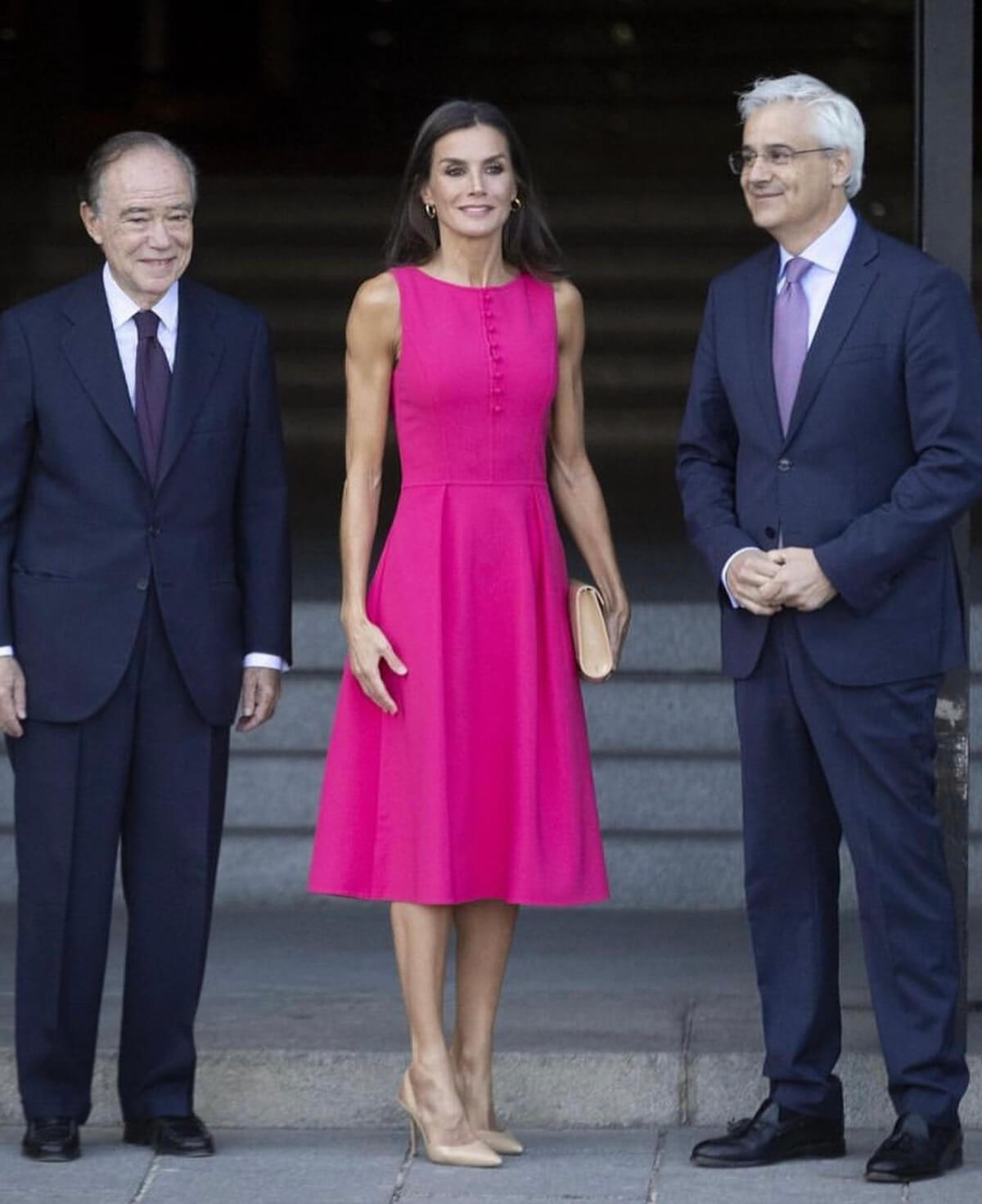 Το κλος midi: ένα φόρεμα που θυμίζει πριγκίπισσα! Σε έντονο χρώμα και με clean cut, η βασίλισσα της Ισπανίας ξέρει καλά ποιες σιλουέτες κολακεύουν ακόμα περισσότερο τη δική της.