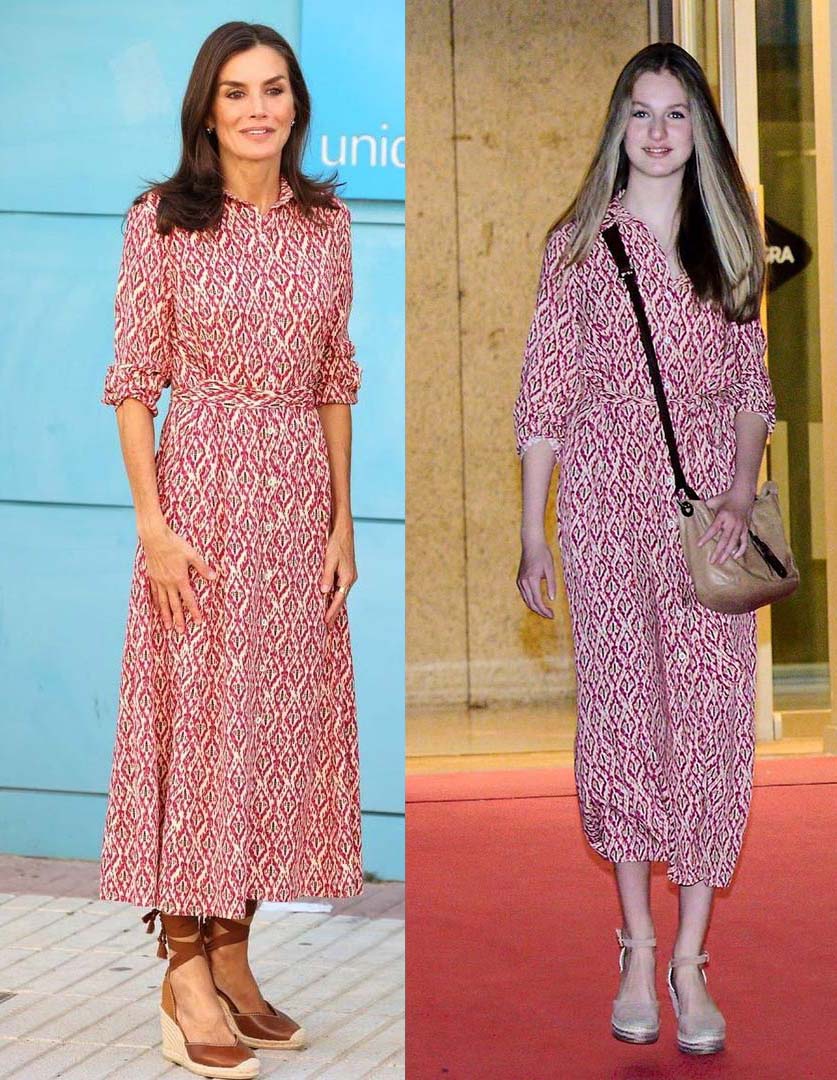 Το δανεικό printed: κι όταν λέμε δανεικό, εννοούμε δανεικό από τη ντουλάπα της κόρης της. Μάλιστα! Η βασίλισσα Letizia είναι τόσο cool που δεν την ενοχλεί να φορέσει το ίδιο φόρεμα με την κόρη της και να το συνδυάσει με υπέροχες εσπατρίγιες, σε ένα look που φωνάζει καλοκαίρι.