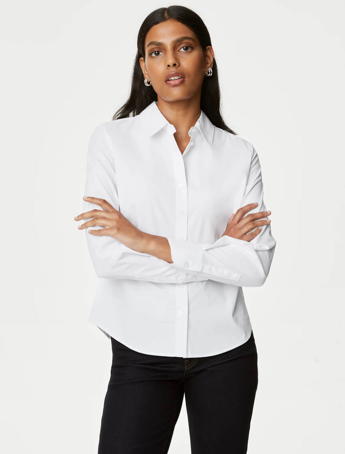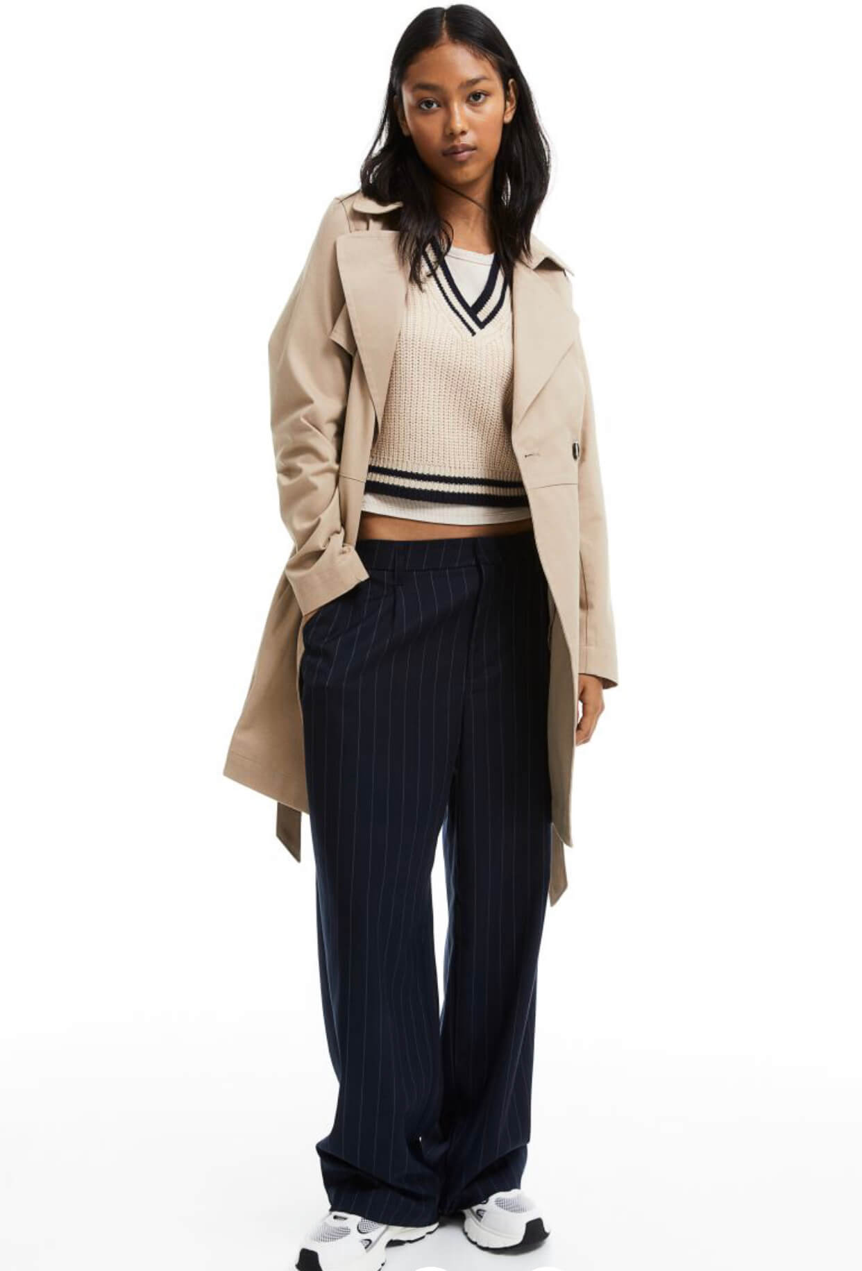 Η Mabel φορά ένα από τα πιο ιδιαίτερα ugly sweaters σε μορφή γιλέκου συνδυασμένο με ένα λευκό πουκάμισο και μια chic καμπαρντίνα σε κλασική απόχρωση, δημιουργώντας το πιο εύκολο look του φθινοπώρου.
