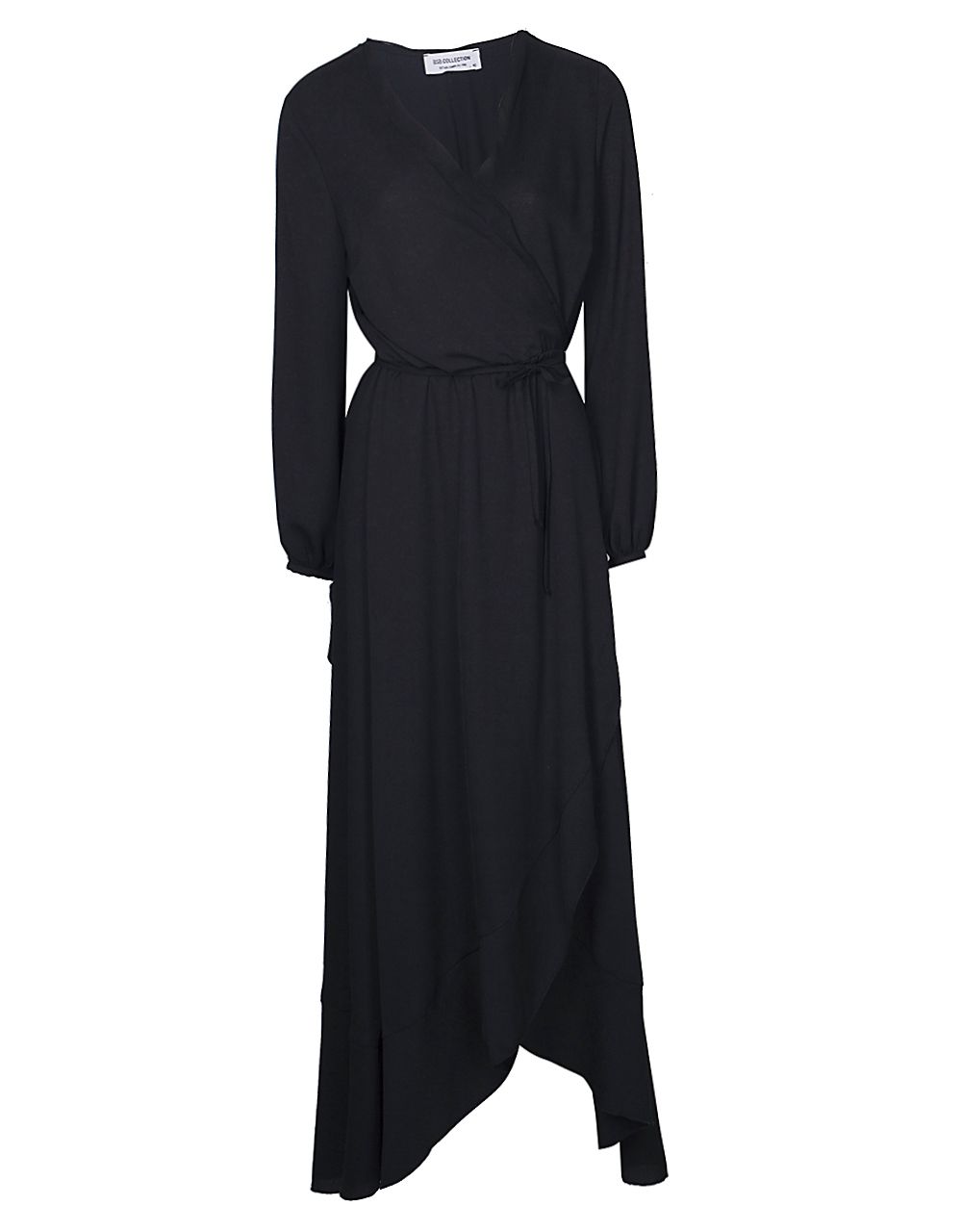 Αυτό το wrap dress κολακεύει κάθε σιλουέτα. Επιπλέον είναι μαύρο και μπορείτε να το φορέσετε σε πολλές περιστάσεις. Συνδυάστε το με ψηλοτάκουνα πέδιλα, ή σανδάλια, αν θέλετε να δημιουργήσετε ένα πιο χαλαρό αποτέλεσμα.