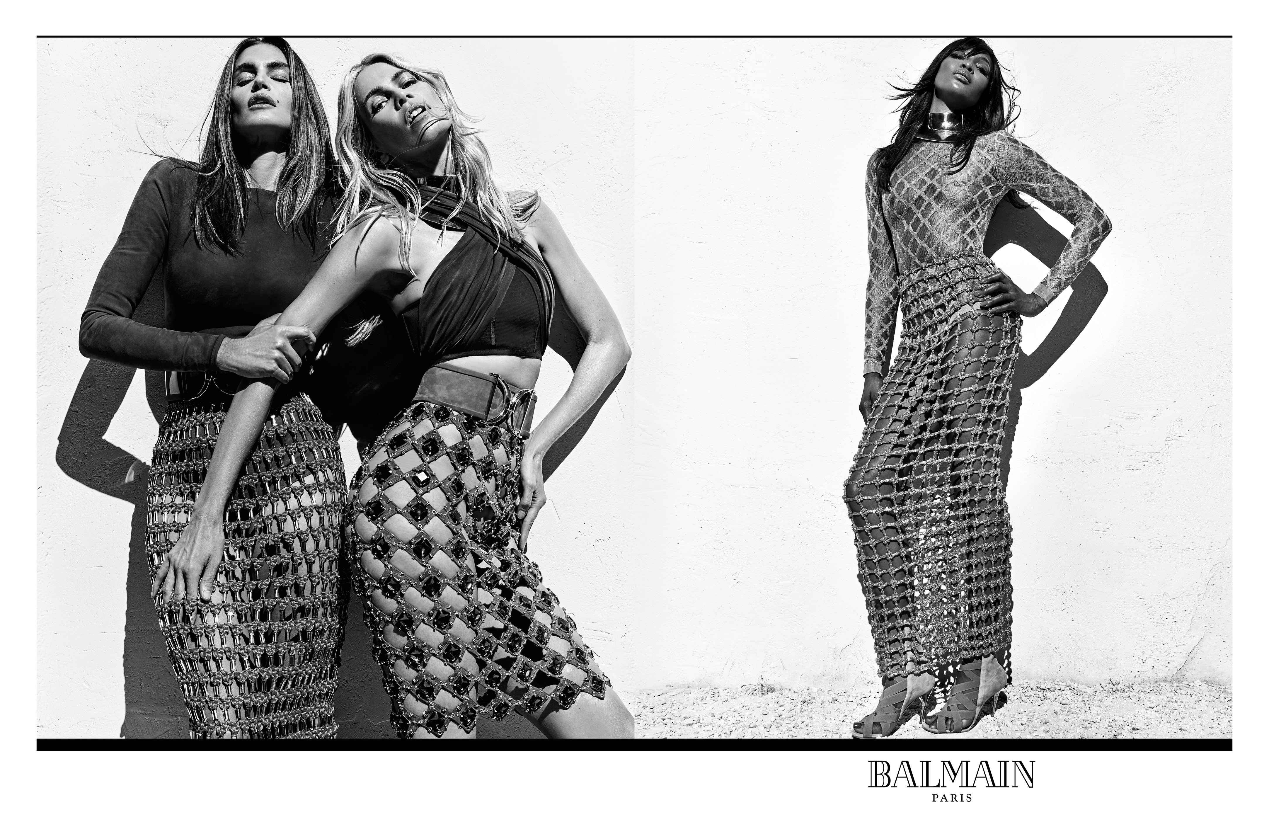 Έτσι αυτή τη φορά στις εικόνες του Balmain θα δούμε να φορούν τα ρούχα του τρία ιστορικά μοντέλα, με διαχρονική ομορφιά και class, οι μετοχές των οποίων δεν πρόκειται να πέσουν ποτέ. Ο λόγος για τις Naomi Campbell, Cindy Crawford και Claudia Schiffer, οι οποίες πόζαραν στον φακό του Steven Klein και από χθες που οι φωτογραφίες είδαν το φως της δημοσιότητας, το Internet έχει τρελαθεί.