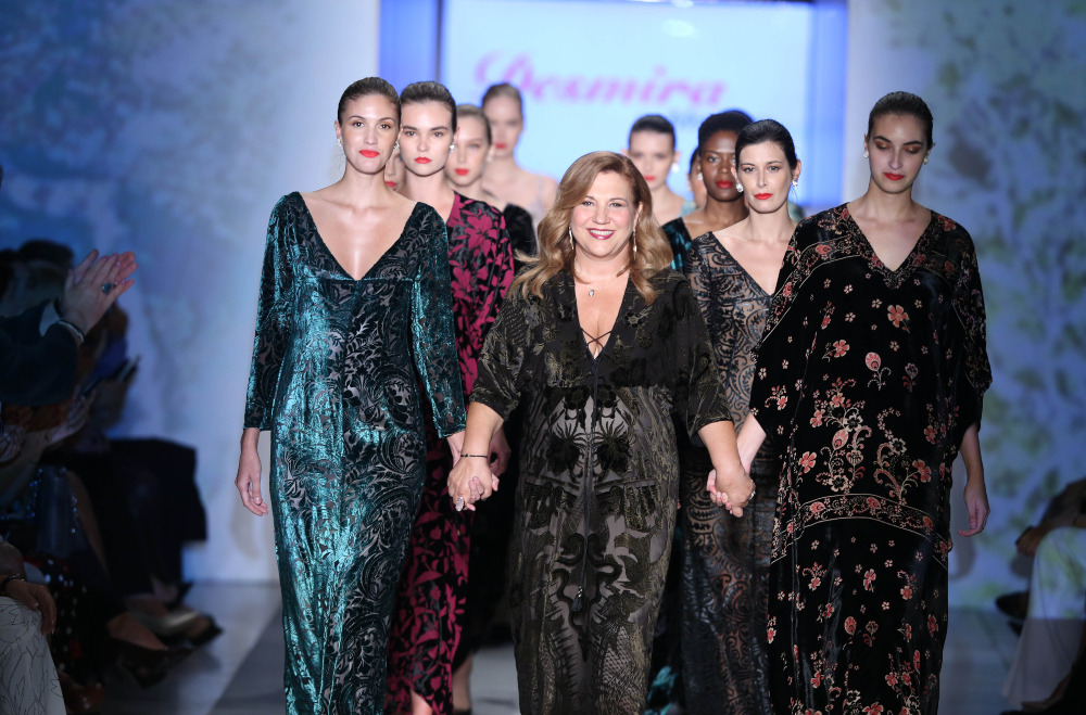 Την πρώτη ημέρα της εβδομάδα μόδας, μάλιστα, η Δέσποινα Μοιραράκη παρουσίασε τη νέα συλλογή του fashion brand της Desmira για τη σεζόν Φθινόπωρο-Χειμώνας 2019/2020. Δαντέλες, μεταξένια και βελούδινα υφάσματα, κιμονό, maxi φορέματα, πολύχρωμα μπροκάρ αλλά και πολύχρωμες παγέτες πρωταγωνίστησαν στη νέα συλλογή της Δέσποινας Μιοραράκη δημιουργώντας ένα εντυπωσιακό αποτέλεσμα.