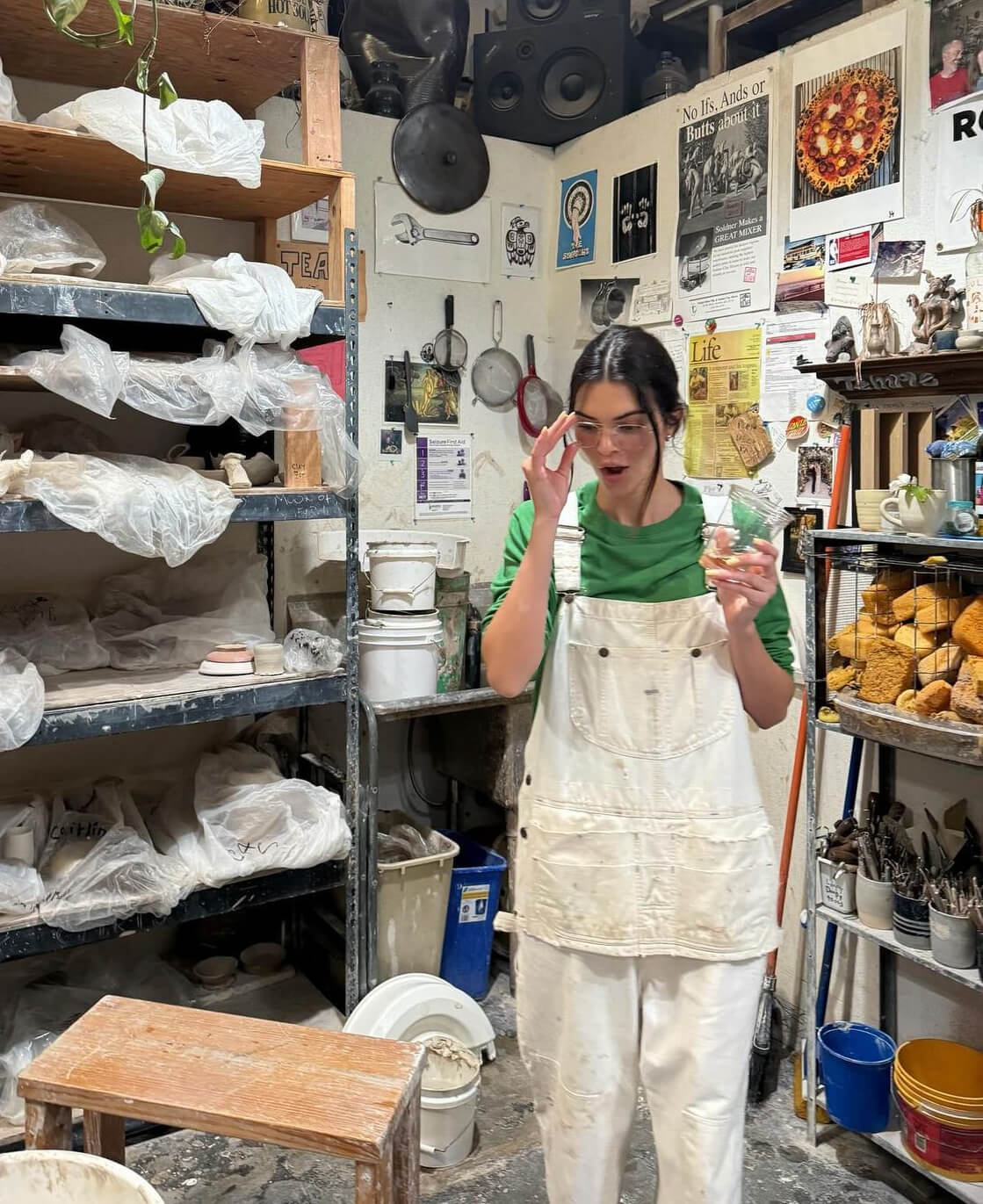 Η Kendall Jenner, για παράδειγμα, πρόσφατα εθεάθη σε ένα στούντιο κεραμικής με σαλοπέτα σε κρεμ απόχρωση, συνδυασμένη με μια πράσινη φούτερ. Ένα τέλειο look που αποπνέει καλλιτεχνική διάθεση και άποψη!