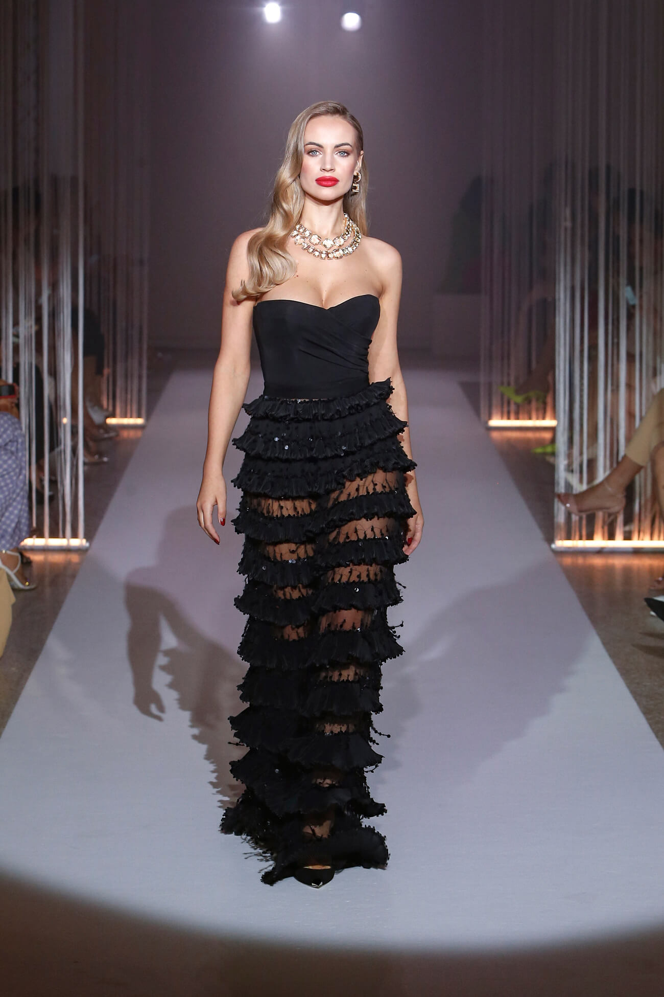 Το πάθος έβαλε φωτιά στην πασαρέλα και το κόκκινο βελούδο χόρεψε μαζί με το απόλυτο μαύρο και τις λάμψεις που θύμισαν το πράσινο του σμαραγδιού. Σώματα αισθησιακά, ντυμένα με body-con φορέματα, περπάτησαν στην πασαρέλα με θηλυκότητα και αποφασιστικότητα, αποδεικνύοντας για ακόμα μια φορά τι πάει να πει γυναίκα για την Elisabetta Franchi. Μια ωδή στην ομορφιά και την υπερηφάνεια, στη δύναμη του γυναικείου πνεύματος.