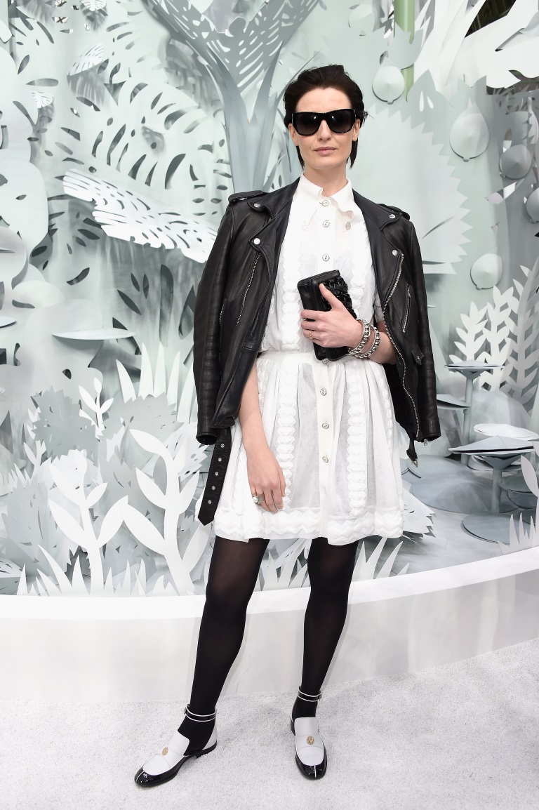 Είναι από τα αγαπημένα μας fashion icons εδώ και χρόνια. Η Erin O’ Connor εμφανίστηκε στο fashion show του Chanel Couture show με ένα ασπρόμαυρο look που μας ενθουσίασε. Το πρώην μοντέλο επέλεξε ένα λευκό φόρεμα-σεμιζιέ ττο οποίο συνδύασε με δερμάτινο μπουφάν, μαύρο καλσόν και ankle-strap ανδρικά παπούτσια, όλα Chanel. Ολοκλήρωσε το look με μεγάλα μαύρα γυαλιά ηλίου.