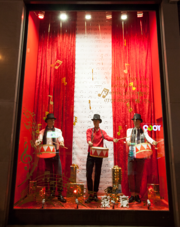 Οι εορταστικές εκπλήξεις, ωστόσο, δε σταματούν εδώ! Φέρνοντας τον παλμό των Χριστουγέννων στο κέντρο 4 μεγάλων πόλεων της Ελλάδας (Αθήνα, Θεσσαλονίκη, Πειραιάς, Καλαμάτα) οι βιτρίνες των πολυκαταστημάτων notos μεταμορφώνονται σε φαντασμαγορικά χριστουγεννιάτικα τοπία, συνοδεία υπέροχης μουσικής! Μουσικοί, τυμπανιστές και μικροί καλαντιστές βγαλμένοι σαν από παραμύθι εντυπωσιάζουν τους περαστικούς σε όλη τη χώρα με τα περίτεχνα χρώματα και τις μελωδίες τους, προσδίδοντας στις βιτρίνες θεατρική διάθεση και αύρα πολυτέλειας, με ιδιαίτερα αρχιτεκτονικά στοιχεία και πλούσιο χριστουγεννιάτικο φωτισμό! Την επιμέλεια όλων των βιτρινών ανέλαβε η εταιρεία dteam υπό τη δημιουργική καθοδήγηση της διακοσμήτριας Νικολέτα Γαβαλά, ενώ η εταιρεία ΦΙΛΙΠΠΟΣ ΝΑΚΑΣ έντυσε τις μοναδικές θεατρικές συνθέσεις με υπέροχα μουσικά όργανα.