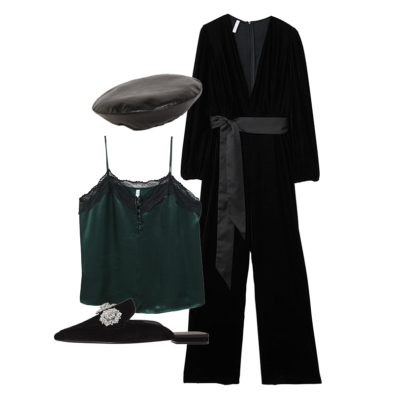 Η ολόσωμη φόρμα είναι επίσης πάντα ανάμεσα στις αγαπημένες μας επιλογές γιατί με ένα κομμάτι έχουμε έτοιμο ένα ολόκληρο σύνολο. Επιλέξτε πολυτελές βελούδο και ένα τοπ με δαντέλα που θα φαίνεται διακριτικά από μέσα, και ολοκληρώστε το σύνολό σας με mules για να κάνετε τη διαφορά. Δεν είναι υπέροχο αυτό το look;