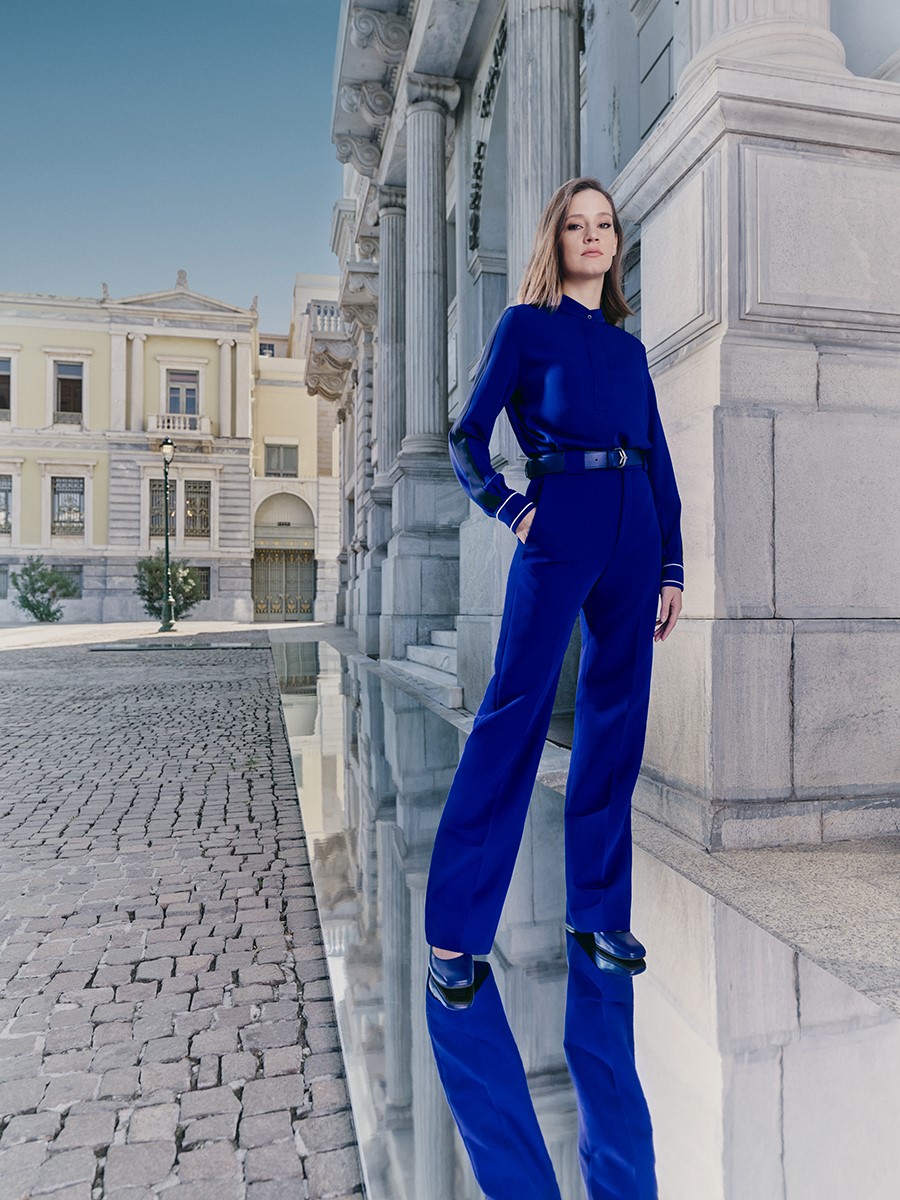 Κομμάτια που συνθέτουν ένα πολυσχιδές μοτίβο στην ενδυμασία των πληρωμάτων. Κλασικές tailored σιλουέτες διανθίζονται με προσεκτικά μελετημένες λεπτομέρειες όπως ενσωματωμένα φουλάρια στο ντεκολτέ, γεωμετρικές ασυμμετρίες και γραμμικές λεπτομέρειες που υπογραμμίζουν την δομή των ενδυμάτων. Στις ανδρικές στολές, γιακάδες χωρίς τα αυστηρά πέτα προσδίδουν μια αίσθηση δωρικής απλότητας, ενώ πρακτικά γιλέκα και κουστούμια διευκολύνουν τις κινήσεις κατά την άσκηση των καθηκόντων. Σε μια εποχή όπου η διαφορετικότητα και η συμπερίληψη είναι αναπόσπαστα κομμάτια, η φιλοσοφία του Schwab τις αναδεικνύει, δημιουργώντας στολές που λειτουργούν τόσο ως ενωτικά στοιχεία της ομάδας, αλλά ταυτόχρονα και ως μέσο έκφρασης των διαφορετικών προσωπικοτήτων που συνυπάρχουν σε αυτή.