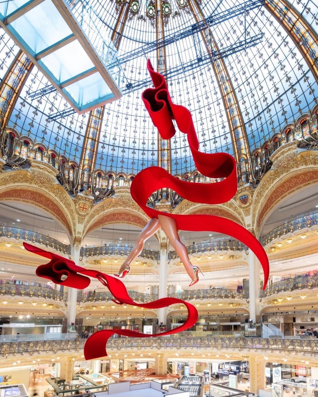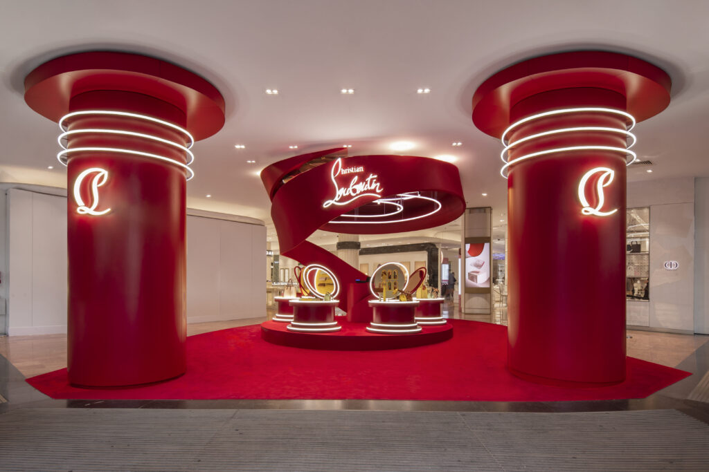 Το La Maison Christian Louboutin κατακλύζει το Galeries Lafayette με εγκαταστάσεις επικών διαστάσεων σε τέσσερις γωνίες. Από την Coupole μέχρι τη βιτρίνα της λεωφόρου Haussmann, αλλά και με αποκλειστικά pop-ups στον πρώτο όροφο – είσοδος Mogador – και στον 4ο όροφο.