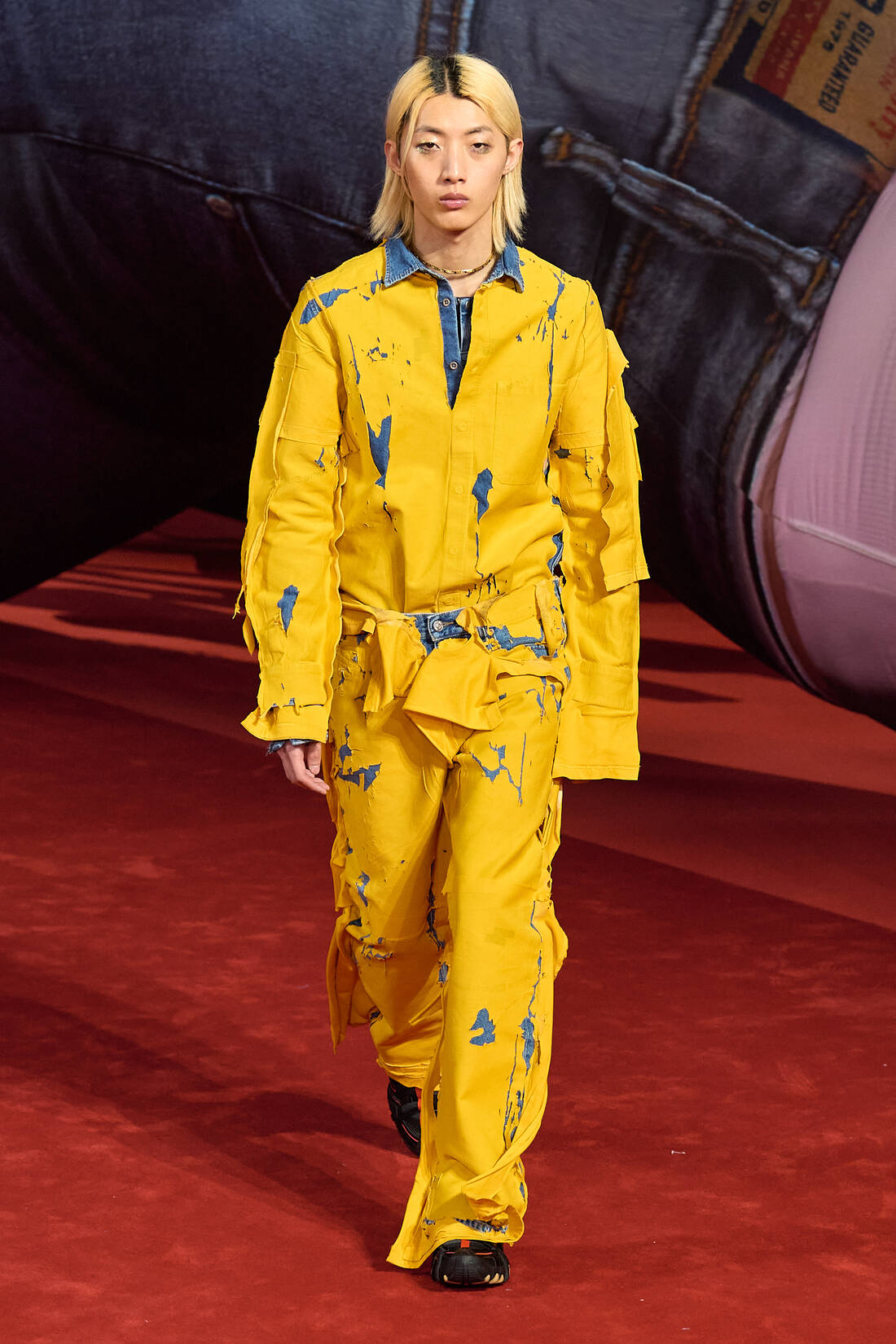 Ο καλλιτεχνικός διευθυντής Glenn Martens παρουσίασε την πρώτη του επίδειξη μόδας για την Diesel, στην οποία κυριάρχησαν τα βασικά στοιχεία του DNA του brand: denim, πειραματισμός, εξέγερση και παιχνίδι.