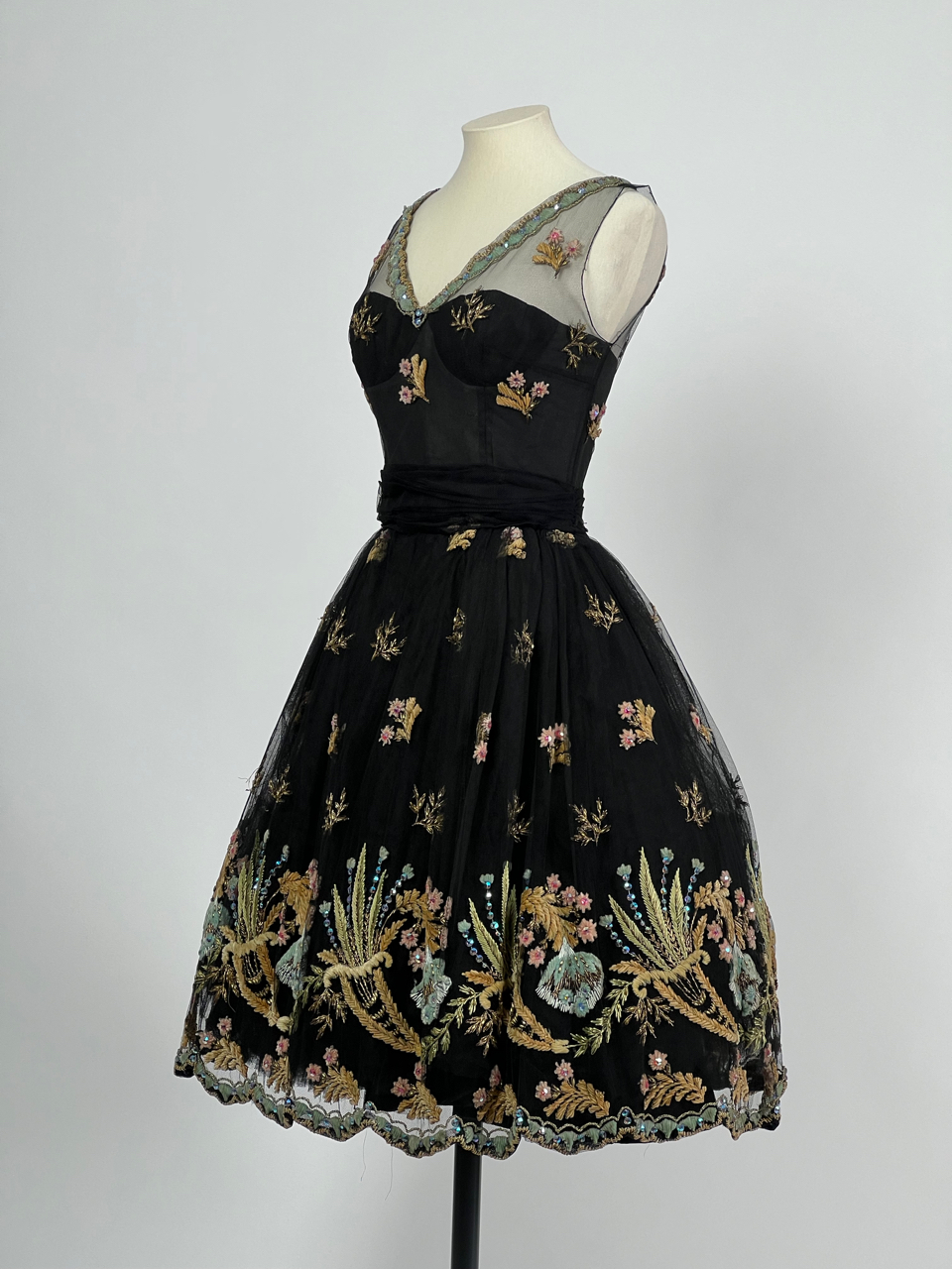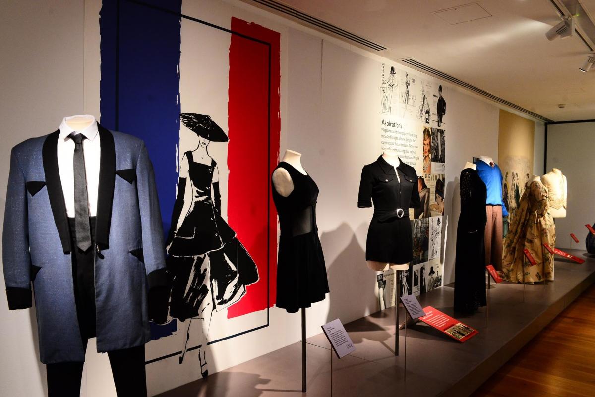 Εκτίθενται 27 ρούχα από τις συλλογές του μουσείου, αλλά επίσης κοσμήματα, υποδήματα και εσώρουχα, μαζί με σχέδια ραπτικής από χαρτί και βιβλία.