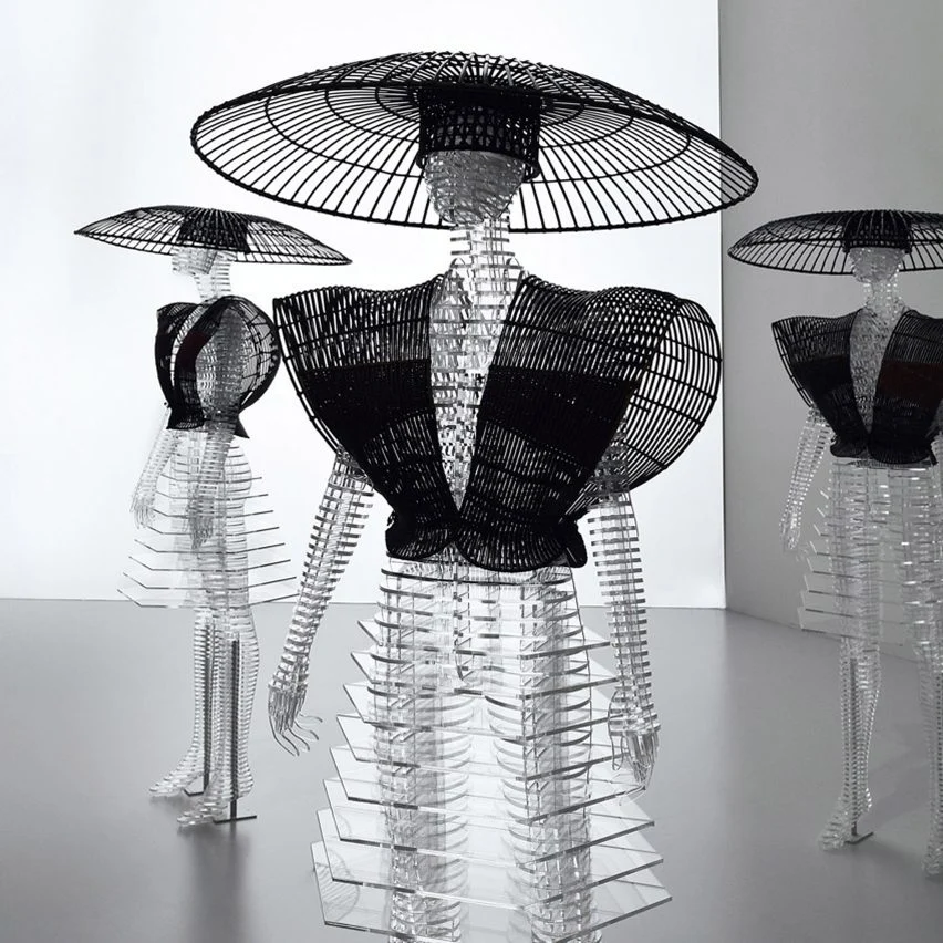 Αυτά τα μπούστα και τα καπέλα από ρατάν και μπαμπού, είναι σχεδιασμένα έτσι ώστε να ακολουθούν και να τονίζουν την τοπογραφία του σώματος. Κατασκευάστηκαν από τον Ιάπωνα τεχνίτη μπαμπού Shochikudo Kosuge σε συνεργασία με την καλλιτέχνη Emi Fukuzawa, για τη συλλογή Άνοιξη Καλοκαίρι 1982, του Issey Miyake. Αυτά τα κομμάτια παρουσιάστηκαν πρόσφατα με μανεκέν- κούκλες που δημιούργησε ο επί χρόνια συνεργάτης του Miyake Tokujin Yoshioka, στην έκθεση ‘The Work of Issey Miyake’, στο Εθνικό Κέντρο Τέχνης του Τόκιο, το 2016.