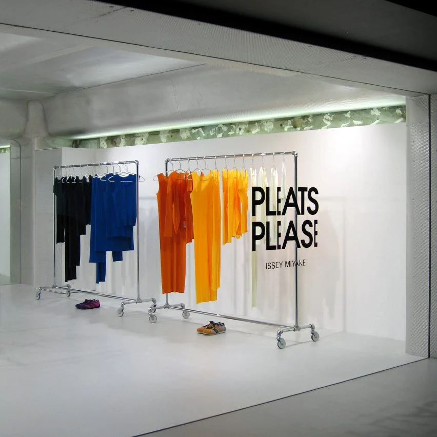 Το Pleats Please, μια θυγατρική εταιρεία μόδας υπό την δημιουργική μπαγκέτα του Miyake, εμφανίστηκε το 1993. Η φίρμα αυτή εισήγαγε μια καινοτόμο και χαρακτηριστική τεχνική που περιελάμβανε τη δημιουργία ρούχων ξεκινώντας από μια και μόνη κλωστή, με την προσθήκη πιετών στα ρούχα, αφού πρώτα αυτά ράβονταν στο τελικό τους σχήμα. Αυτή η τεχνική εισήχθη για πρώτη φορά στην κύρια συλλογή του Miyake το 1988. Το 2009, ο Tokujin Yoshioka ανακαίνισε ριζικά το κατάστημα ‘Tokyo’s Pleats Please store‘, χρησιμοποιώντας στο εσωτερικό του διακοσμητικά πάνελ από ανακυκλωμένο αλουμίνιο αρχικά κατασκευασμένων για ανταλλακτικά αυτοκινήτων.