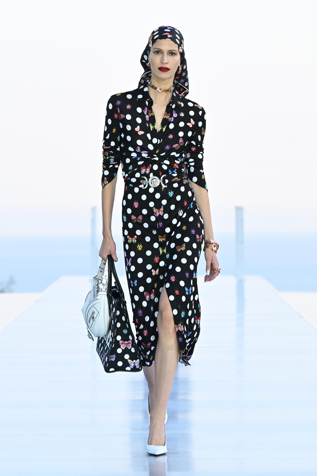 H συλλογή είχε κάτι και από την αισθητική του Gianni Versace, οι οποία ήταν έντονη σε prints, κοψίματα και χρώματα που τον καθιέρωσαν ως «βασιλιά του glamour».