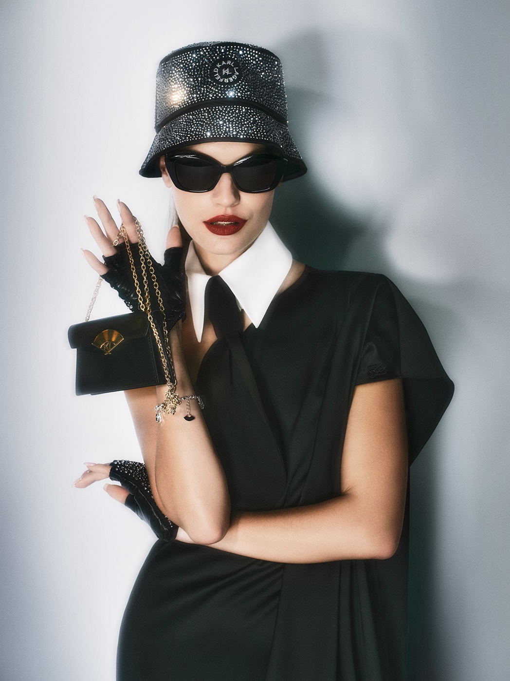 Η αυτοπροσωπογραφία του Karl Lagerfeld μαζί με την υπογραφή του κοσμεί την oversized tote bag και τα μαντίλια, ενώ το αγαπημένο KL archive λογότυπο διακοσμεί τσάντες και παπούτσια.
