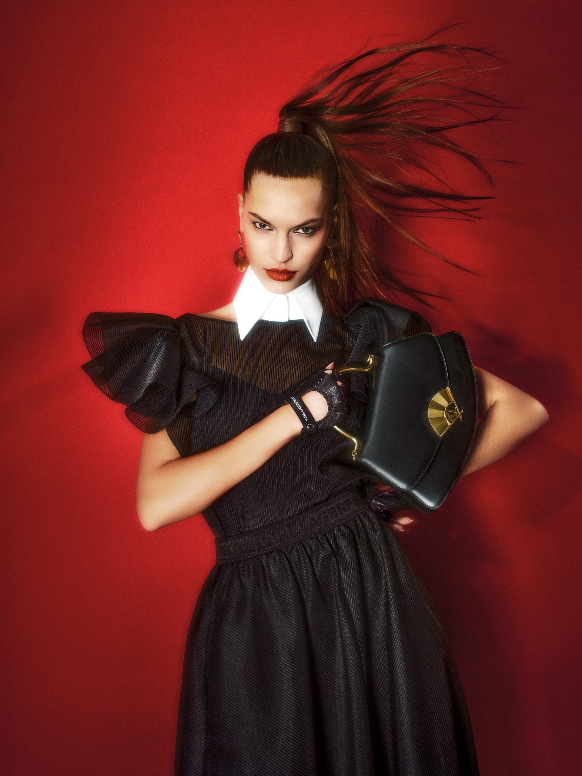 Υμνώντας τα archive σχέδια του Karl Lagerfeld, η θεματική ακολουθεί το black tie dress code, με ανδρόγυνες και super feminine φόρμες. Το cropped ασπρόμαυρο κοστούμι, τα πουκάμισα και τα shirt dresses κλείνουν το μάτι στο προσωπικό στιλ του Karl, ενώ το ριγέ two piece υμνεί την αγάπη του στην κομψότητα. Κομμάτι κλειδί της συλλογής αποτελεί το one shoulder φόρεμα, σε έντονο κόκκινο ή πολυτελές μαύρο σατέν. Η limited edition collection ολοκληρώνεται με τη σειρά των αξεσουάρ.