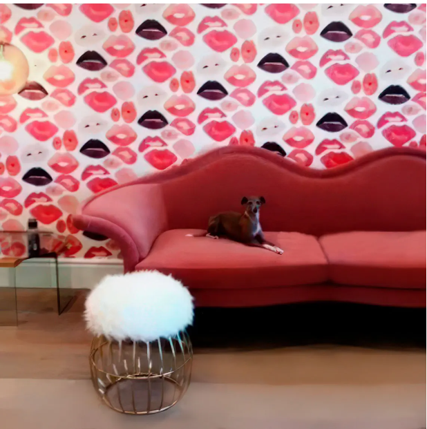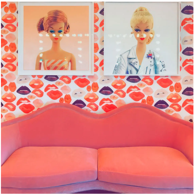 Ο χώρος διαθέτει έναν εντυπωσιακό συνδυασμό ροζ χρωμάτων, που αντικατοπτρίζει την τρέχουσα τάση των ροζ εσωτερικών χώρων.