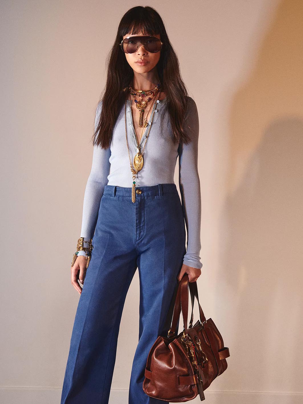Το τζιν επανέρχεται δυναμικά με φαρδιές γραμμές και ιδιαίτερες λεπτομέρειες. Σχεδιαστές όπως η Chloé και η Stella McCartney παρουσίασαν τζιν παντελόνια με φαρδιά μπατζάκια και γυρισμένα ρεβέρ, προσδίδοντας μια μοντέρνα πινελιά στο κλασικό denim.