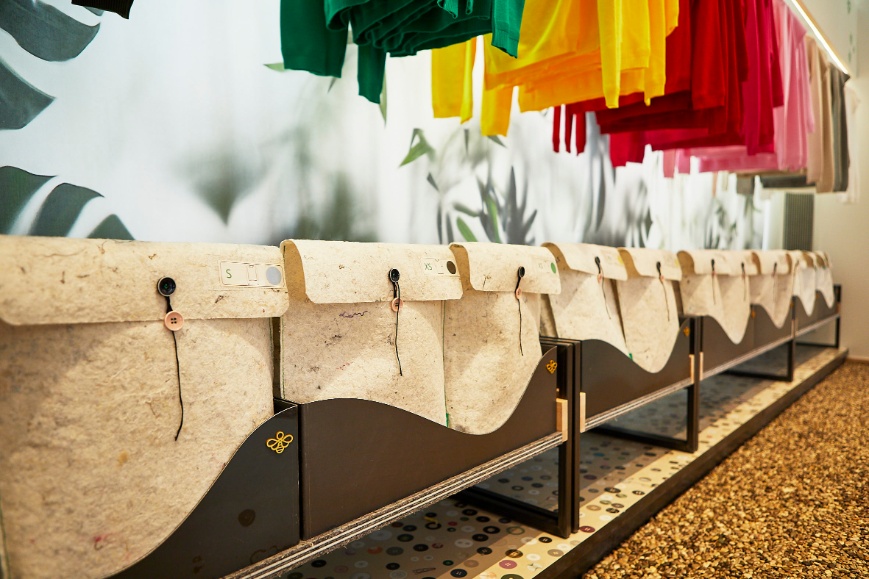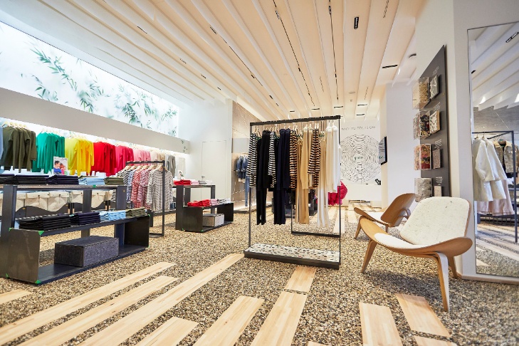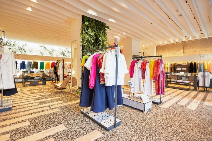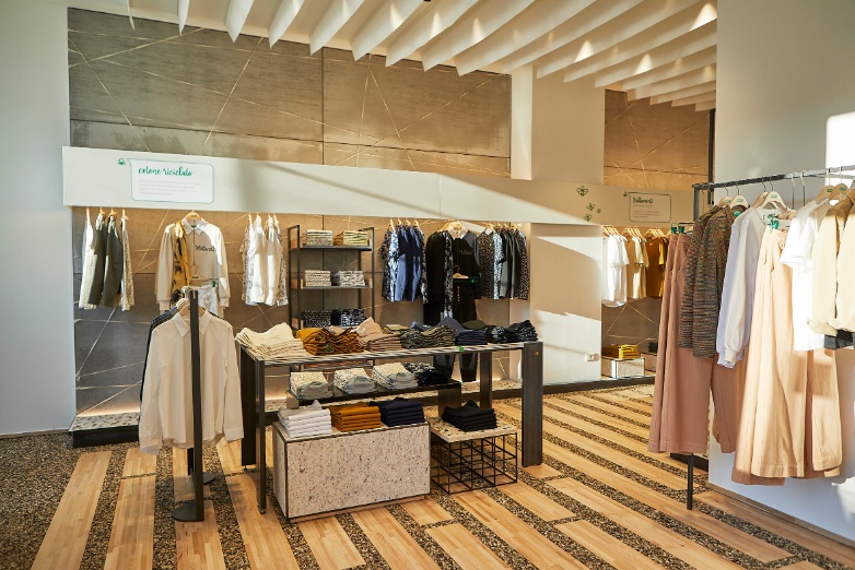 Το ισόγειο κατάστημα των 160 τετραγωνικών μέτρων, είναι κατασκευασμένο στο μεγαλύτερο μέρος του από ανακυκλωμένα φυσικά υλικά. Χαλίκια από τον ποταμό Piave, ανακυκλωμένα ξύλα, υφάσματα και χρώματα είναι μερικά μόνο από τα υλικά που αξιοποιήθηκαν για την ανέγερση του πιο eco friendly εμπορικού καταστήματος. Σύμφωνα με την εταιρεία, το κατάστημα της Φλωρεντίας καταναλώνει 20% λιγότερη ενέργεια σε σχέση με ένα τυπικό κατάστημα.
