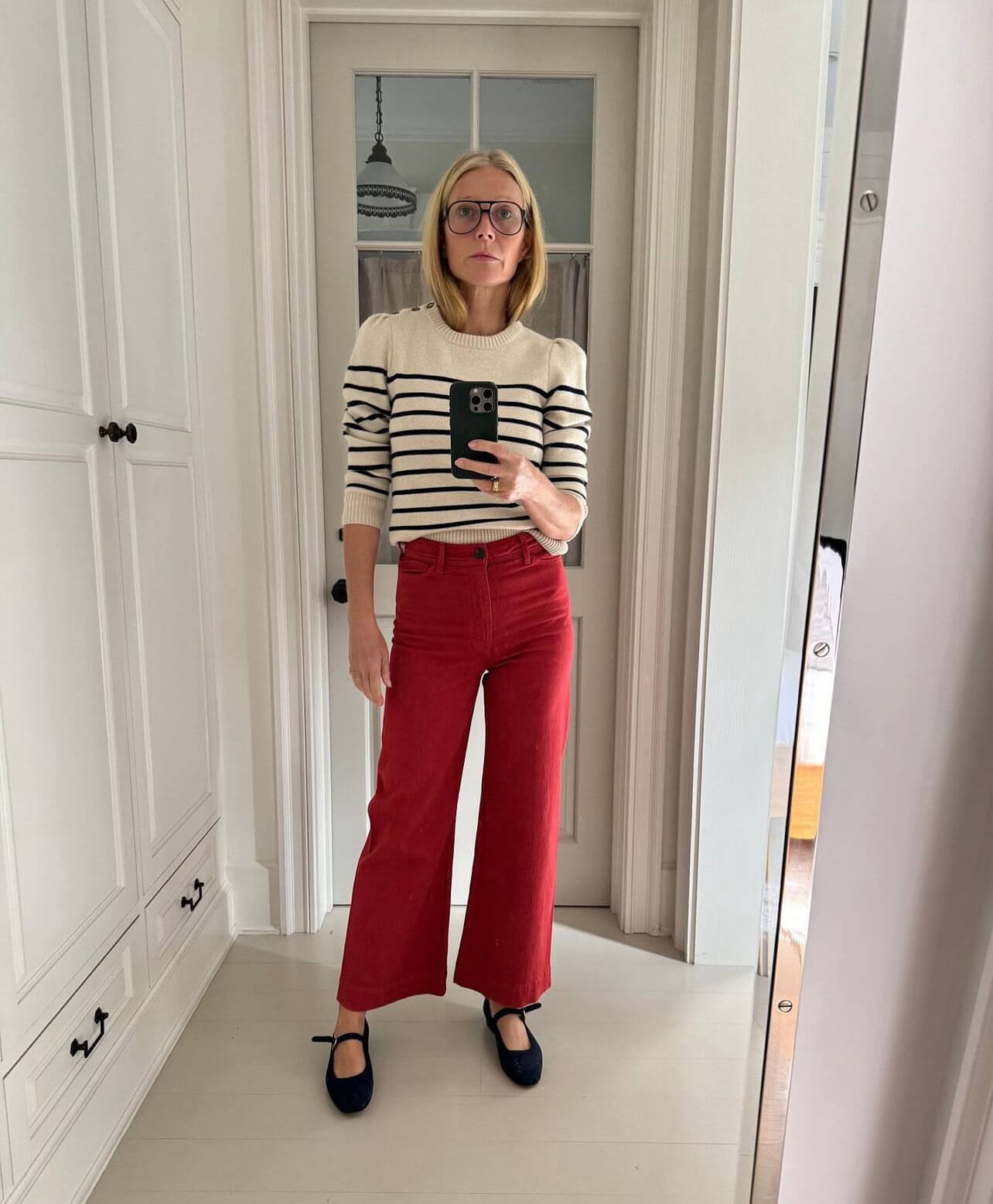 Και αυτή, δεν είναι η μόνη selfie με την οποία η celebrity μας μοιράζει έμπνευση. Η Gwyneth Paltrow δείχνει να το έχει «ρίξει» στη μόδα και στα καθημερινά outfits, τραβώντας μια φωτογραφία μπροστά από τον καθρέφτη της με κάθε της καθημερινό look. Επομένως, αν διανύετε την πέμπτη δεκαετία της ζωής σας και αναζητάτε ένα κομψό style icon με τόλμη, η Gwyneth είναι αυτή που πρέπει να ακολουθήσετε στα social!
