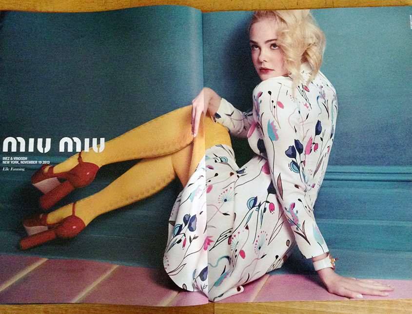 Μετά την Hailee Steinfeld το φθινόπωρο του 2011, την Kirsten Dunst την άνοιξη του 2008 και τη Lindsay Lohan την άνοιξη του 2007, η μικρή αδερφή της Dakota Fanning, Elle, είναι το νέο πρόσωπο του Οίκου Miu Miu για την καμπάνια της επερχόμενης σεζόν.