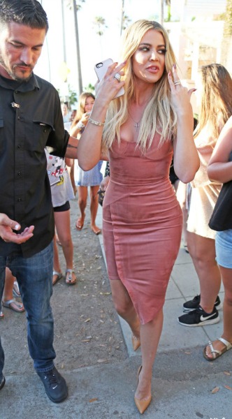 H Khloe Kardashian, που έχει αδυνατίσει απίστευτα τελευταία, απαθανατίστηκε με ένα ροζ σουέντ φόρεμα, με ασύμμετρο τελείωμα, House of CB, το οποίο συνδύασε με πανύψηλες nude γόβες, Christian Louboutin. Ολοκλήρωσε το look με wavy hairstyle και ελαφρύ μακιγιάζ.]]>