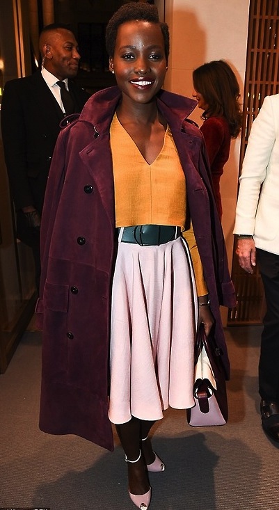 H Lupita Nyong’o παραβρέθηκε στα εγκαίνια του πρώτου flagship καταστήματος Bally στο Λονδίνο, όπου ήταν μάλιστα μία από τις επίσημες οικοδέσποινες, με ένα εξαιρετικό colorblock σύνολο αποδεικνύοντας έτσι γιατί θεωρείται ένα από τα ανερχόμενα fashion icons. Η όμορφη ηθοποιός επέλεξε ένα μουσταρδί top το οποίο συνδύασε με μία A-line φούστα στις αποχρώσεις της πούδρας και μπορντό παλτό, όλα από τον ελβετικό Οίκο. Ολοκλήρωσε το look με κυπαρισσί ζώνη και nude peep-toe γόβες