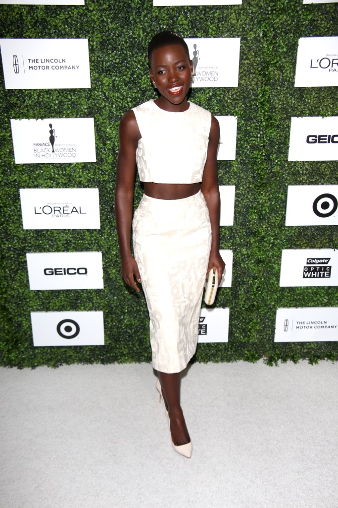 Η ηθοποιός Lupita Nyong’o, που έχει αναδειχθεί στο νέο αγαπημένο μας fashion icon μετά από ένα σερί επιτυχημένων εμφανίσεων με αφορμή τη ταινία στην οποία πρωταγωνιστεί 12 Years A Slave, έδωσε το παρών στο 7ο ετήσιο luncheon ESSENCE Black Women In Hollywood με ένα υπέρκομψο σύνολο Giambattista Valli (Spring 2014) που αποτελούνταν από crop top και ασορτί midi φούστα που σταμάταγε κάτω από το γόνατο. Ολοκλήρωσε το look με κρεμ μυτερές γόβες Sophia Webster, clutch Elie Saab και κοσμήματα Neil Lane.