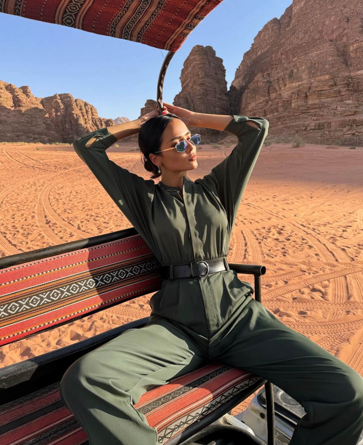 Βέβαια, αν επιζητάτε κάτι εξαιρετικά εύκολο, η ολόσωμη, χακί φόρμα είναι η τέλεια επιλογή. Μερικές μαύρες λεπτομέρειες, όπως cool αρβύλες και είστε έτοιμες για την αστική ζούγκλα που «διψά» για στιλ.