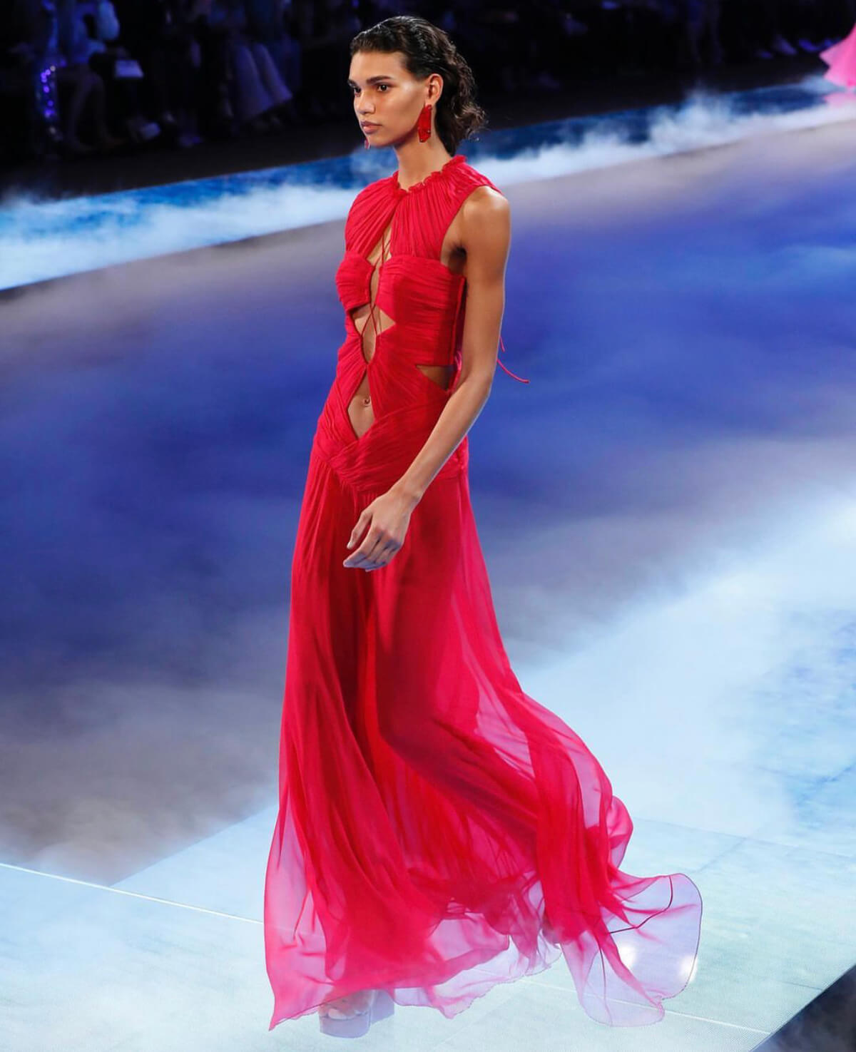 Το αέρινο κι αιθέριο cut-out: από ελαφρύ chiffon που συνδυάζει το παραμυθένιο στοιχείο με μια σέξι νότα, την οποία εντοπίζουμε στα τολμηρά του ανοίγματα. Το πιο αθώα… θανατηφόρο φόρεμα made by Alberta Ferretti.
