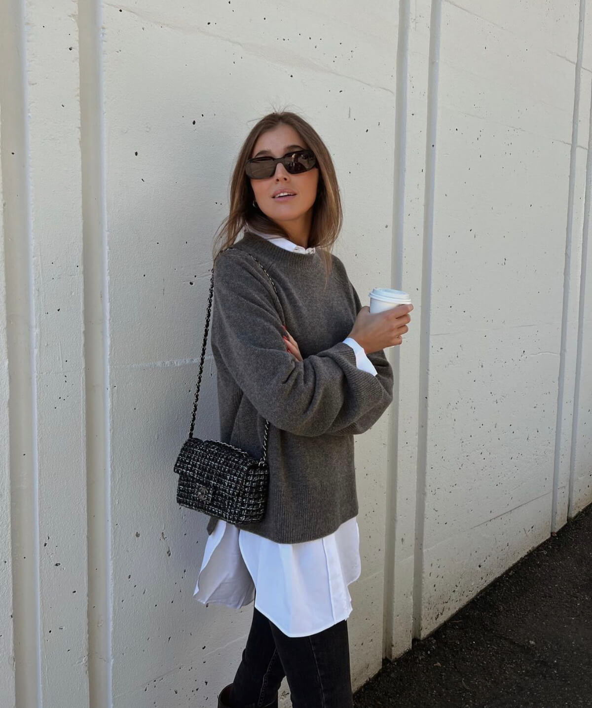 Συνδυάστε το πουκάμισο με το πουλόβερ: κλασική τεχνική του layering, η οποία λειτουργεί πάντα. Αν ωστόσο, θέλετε να διασφαλίσετε μια slim φιγούρα, επιλέξτε ένα ίσιο πουκάμισο, όχι υπερβολικά oversized κι ένα λεπτό πουλόβερ σε χυτή γραμμή και με λεπτή πλέξη. Το πιο τέλειο outfit για μια cozy εμφάνιση με άποψη.