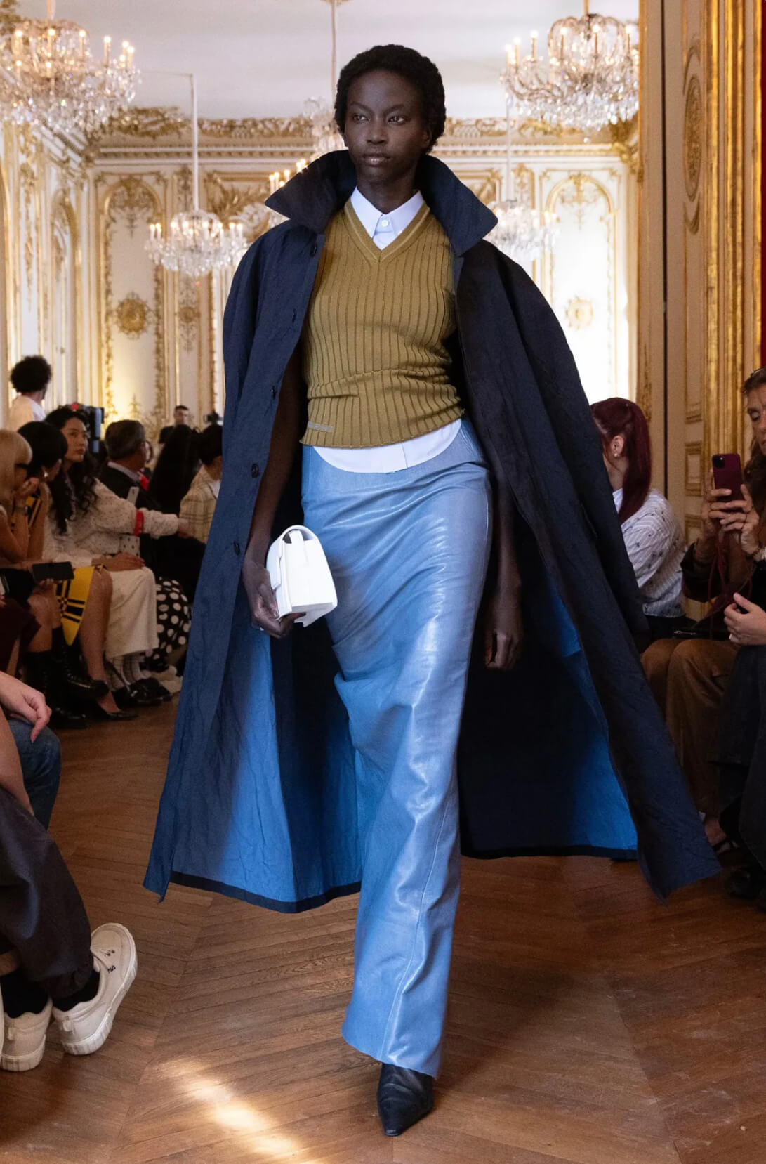 Μια ανανεωμένη εκδοχή της κλασικής σιλουέτας, που συνδυάζει την αυστηρότητα του μίντι παλτό με την αέρινη γοητεία της μάξι φούστας. Το παιχνίδι σε αυτό το ντύσιμο αφορά στα μήκη. Το αποτέλεσμα είναι τόσο συναρπαστικό, όσο και καινούργιο στο μάτι.