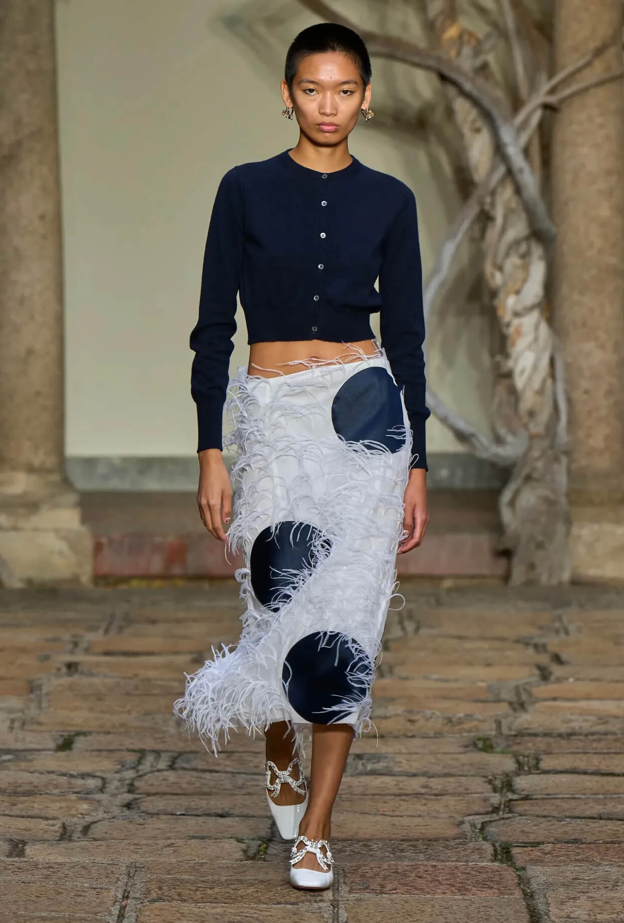 Η μίντι φούστα με πουά μοτίβο συναντά την κλασική γοητεία της ζακέτας της γιαγιάς. Για το γραφείο, για τα ραντεβού, για τις απογευματινές σας βόλτες, το σύνολο αυτό θα σας λύσει κυριολεκτικά τα χέρια.