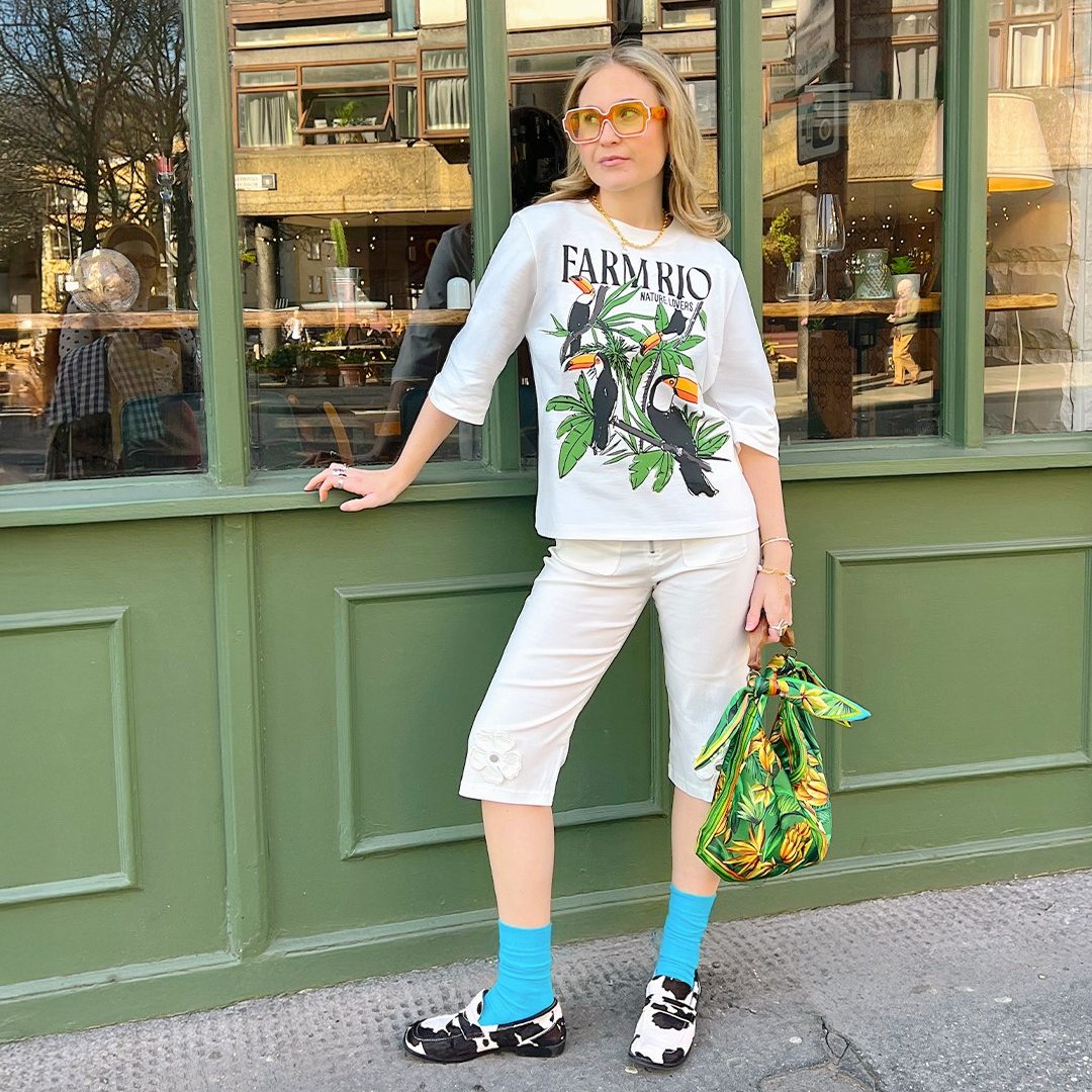 Για ένα κομψό city look με preppy αλλά fun αίσθηση επιλέγουμε μια εμπριμέ scarf bag με παιχνιδιάρικα χρώματα. Την απογειώνουμε στιλιστικά συνδυάζοντάς την με μίντι φούστα με πιέτες, κλασική πόλο μπλούζα και σαγιονάρες. Το αποτέλεσμα είναι φρέσκο, θηλυκό και απόλυτα καλοκαιρινό, ιδανικό για βόλτες στην πόλη ή ένα χαλαρό brunch με φίλες.