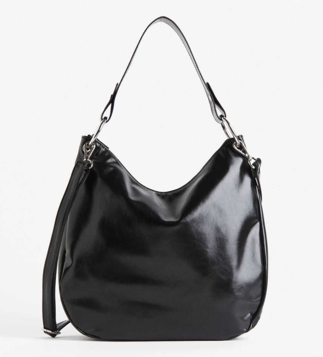 Η διαχρονική κομψότητα μιας μαύρης δερμάτινης τσάντας δεν ξεθωριάζει ποτέ. Πόσο μάλλον όταν συνδυάζεται με το αβίαστο slouchy σχήμα της, προσφέροντας μια ακατάστατα chic εικόνα στην οποία δεν μπορούμε σε καμία περίπτωση να αντισταθούμε.